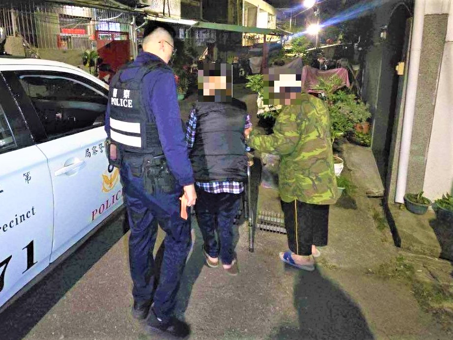 警方了解事發經過後,向老翁詢問其年籍資料,但老翁只講得出姓名,無法說出確實之住址,這時有名路過之民眾向警方表示,該老翁是他的鄰居,知道老翁住在哪,警方得知老翁住家後,基於安全考量,便駕駛巡邏車將老翁平安載返家。事後順利將老翁載返家後,老翁對於警方的熱心幫忙表示感謝,直呼幸好有警方幫忙;另警方也不忘提醒老翁,出門在外應注意自身狀況,並隨身攜帶手機,避免迷途等事故發生。