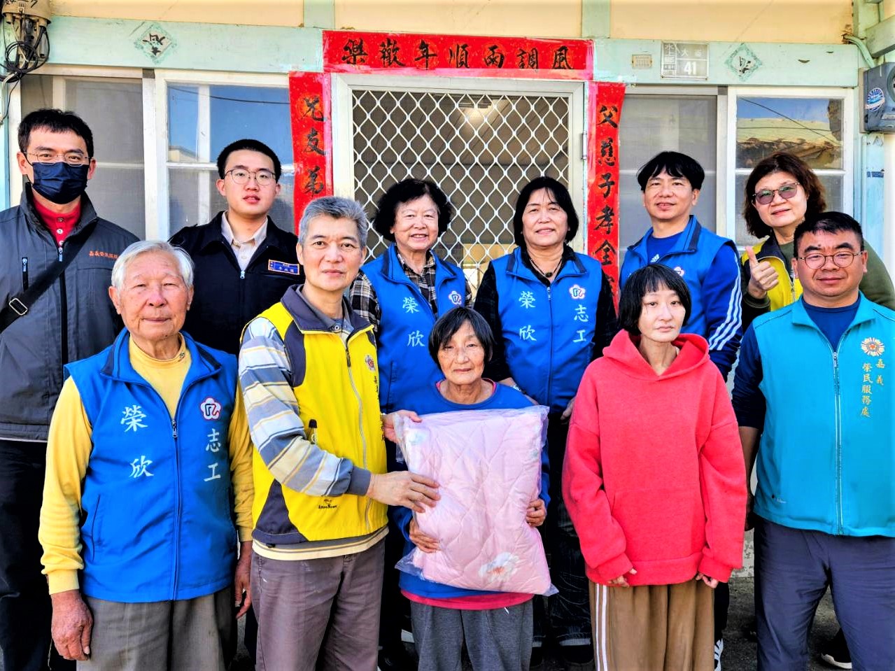 活動中,志工與替代役男分工合作,仔細擦拭門窗、整理居家環境,使屋內煥然一新,大家拿出事先準備好的春聯,由志工協助張貼,象徵辭舊迎新、迎接新年的好兆頭,現場洋溢濃濃年味與歡笑聲;而除了環境整理與貼春聯外,服務團隊也特地準備暖呼呼的熱飲,陪伴長輩們一同享用,在輕鬆的聊天互動中,讓長輩感受到被關心、被陪伴的溫暖,梁姓榮民長輩及呂阿姨對於嘉義榮服處與志工的到訪深表感謝,臉上滿是感動與笑容。