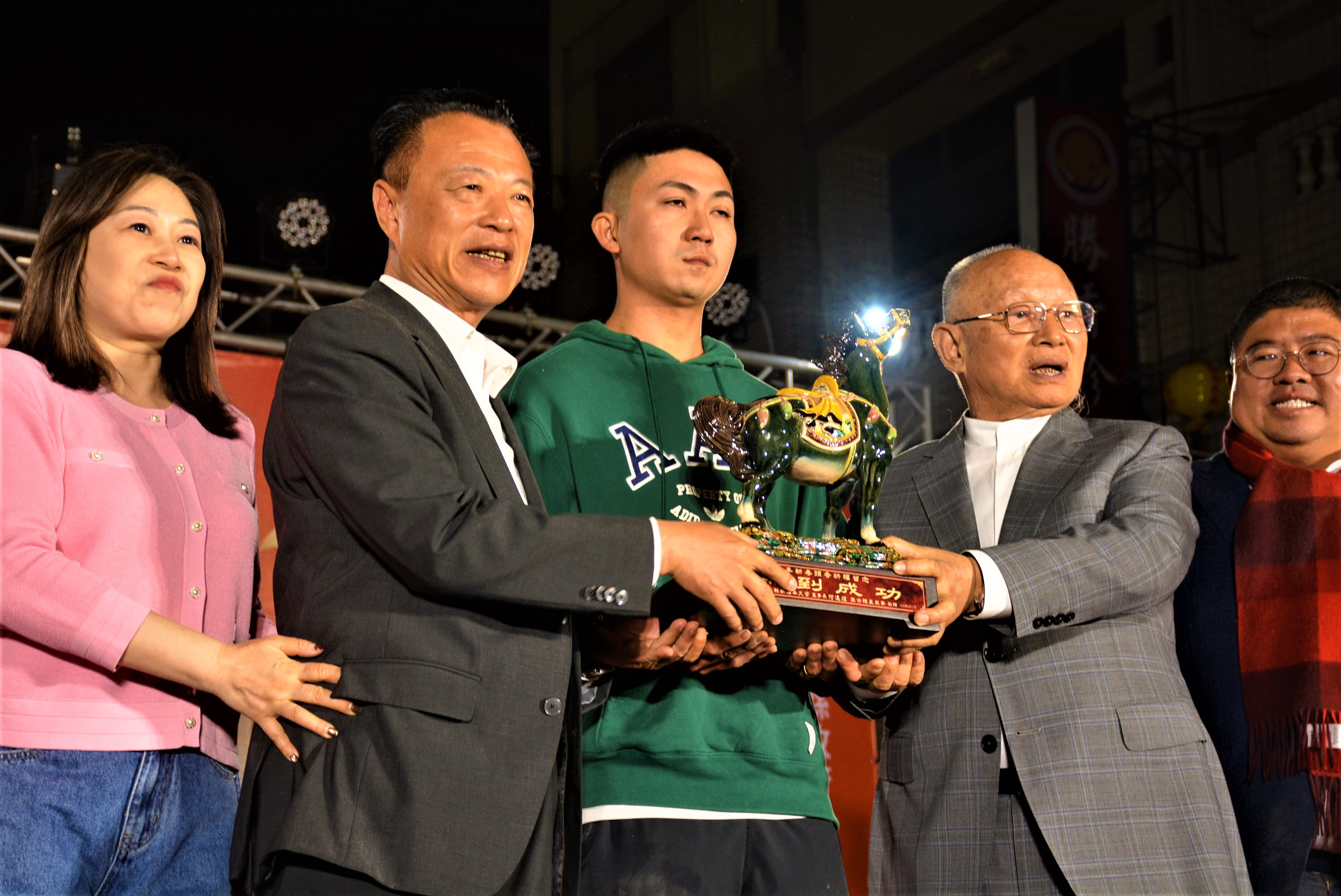 今年再度搶得奉天宮頭香的22歲楊信旗,在新港消防分隊擔任義消,已經連續4年參加搶頭香,去年搶得頭香後,今年再度參加,立志要連12年搶到頭香,收集12生肖的大師交趾陶作品,他並祈求媽祖保佑新港及嘉義平安無災,同時也立志要連12年搶到頭香,收集12生肖的大師交趾陶作品;隨後也由翁章梁、奉天宮董事長何達煌等人頒贈價值約10萬元的林洸沂大師馬年交趾陶藝品給拔得頭籌的楊信旗。