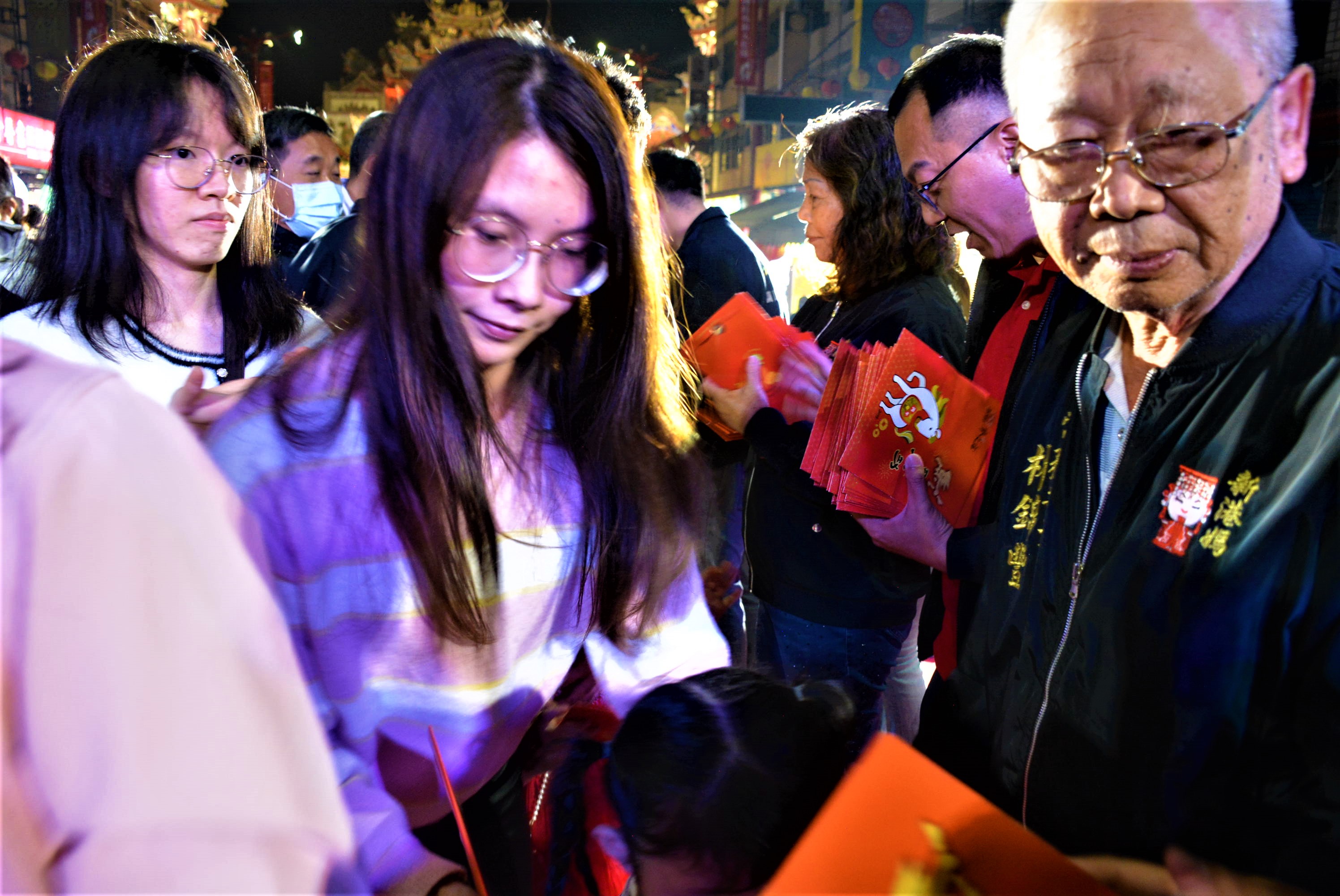 奉天宮除夕活動,除了「開廟門、搶頭香」,還在奉天宮前廣場辦理晚會活動,有一連串的表演,同時,縣長翁章梁與奉天宮董事長何達煌、董監事也一起發放設計精美、可折成小型收納盒的馬到成功造型賀歲吉祥紅包,贈送給鄉親作為紀念,可放在辦公桌或家中讓財源滾滾、福氣滿滿,同時還可以獲得媽祖一整年的加持,吸引大批信眾排隊領紅包。