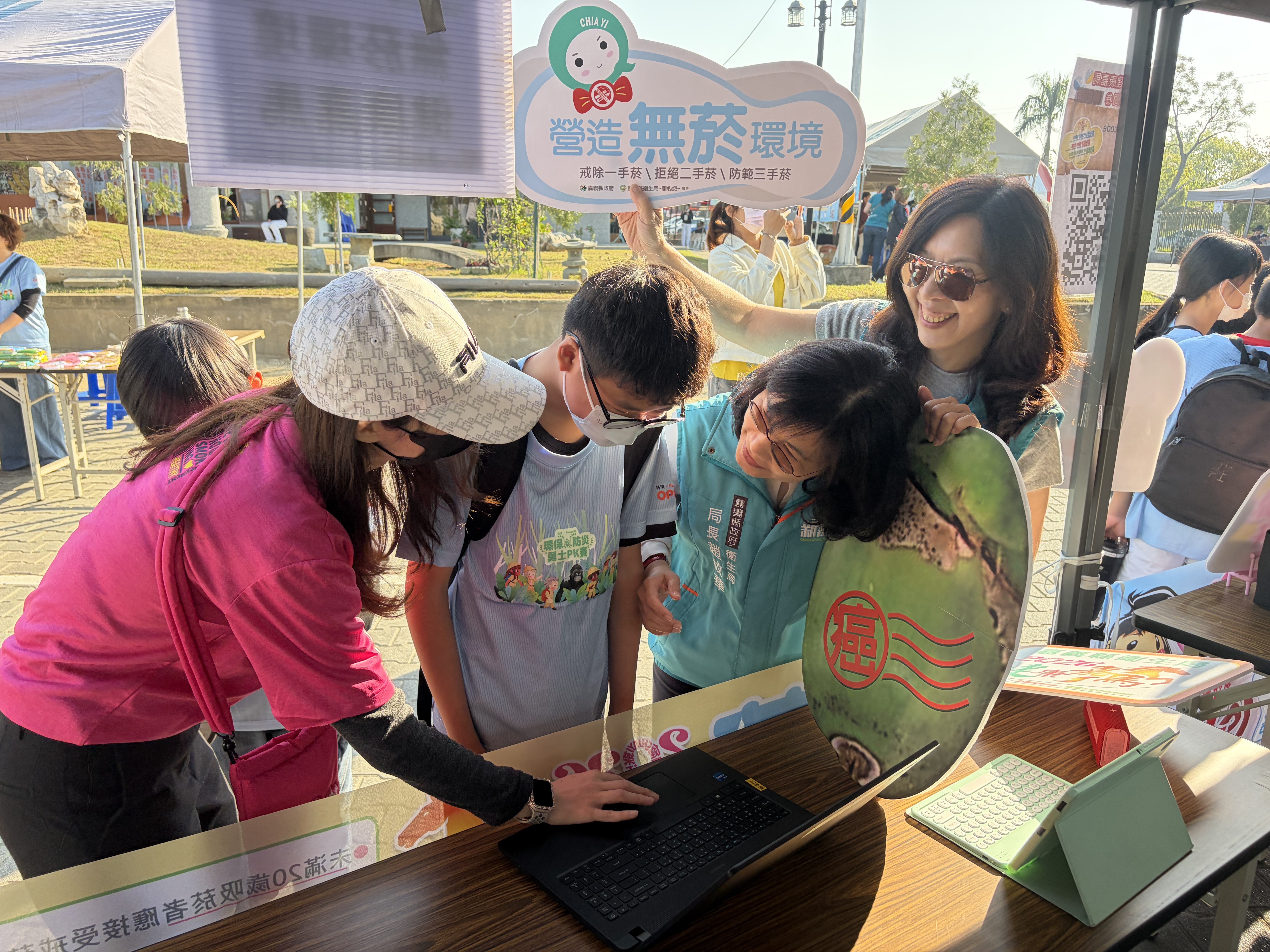 嘉義縣衛生局18日於慈濟嘉義聯絡處聯合設攤,針對參加全縣PaGamO環保防災電競青少年,推出「數位Q寶戒菸拒檳大作戰」藉由數位教材、科技應用與互動式衛教宣導,貼近青少年族群學習需求,讓學生在輕鬆活潑的活動氛圍中認識健康議題,落實衛教科技化與健康教育向下扎根,活動現場氣氛熱絡,共吸引約600名師生熱情參與。