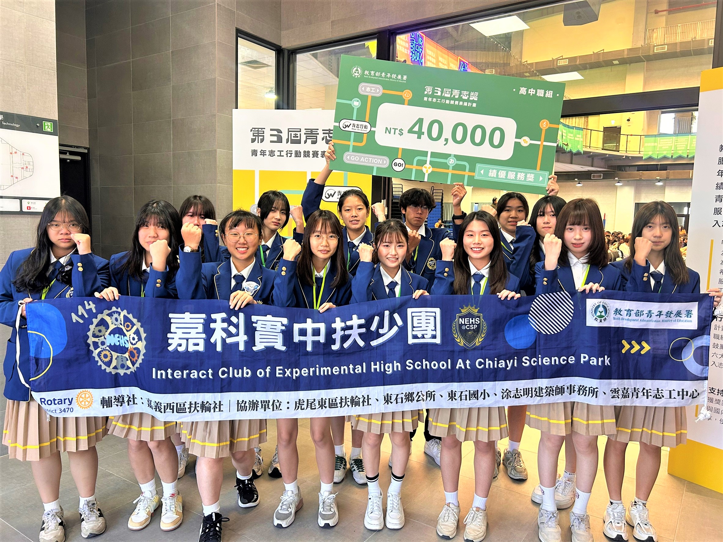 〔記者吳玉芬/嘉義縣報導〕嘉科實中扶少團於2024年學校創校首年即成立,在學校支持及指導老師吳俐穎帶領下,團隊從零開始建立組織架構、分工制度與行動方向,逐步發展出以「理解需求、在地服務」為核心的行動模式;而於青年節前夕,「嘉科實中扶少團」於2026年3月中參加教育部青年發展署「青志獎」全國決賽,從全國146支隊伍中脫穎而出,榮獲高中職組「績優服務獎」,為本屆賽事第二大獎項,不僅是本年度唯一獲獎的嘉義團隊,更創下近三年來嘉義地區高中職團隊最佳表現,為地方爭光,也為青年節增添具體而深刻的青春實踐意義。