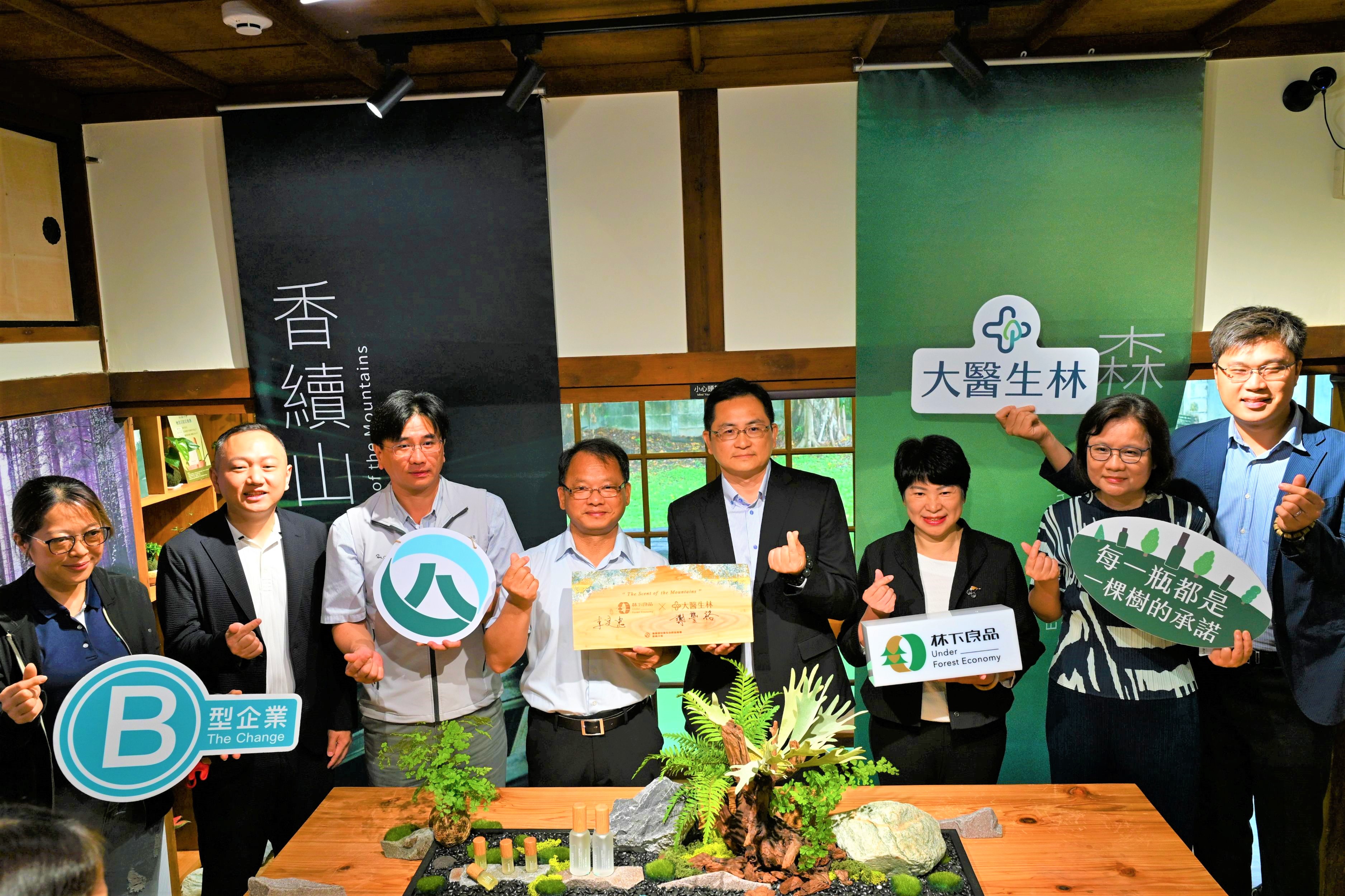 本次合作夥伴大醫生技股份有限公司為嘉義在地企業,長期深耕產品研發及天然植物香氛製造,並已認養9處森林復育地,累積種植逾16,120棵樹木,與林業及自然保育署攜手推動造林,積極呼應2050淨零碳排政策目標。雙方秉持互惠互利及跨域整合精神,由嘉義分署提供紅檜與牛樟精油原料,交由業者負責產品研發、設計及市場行銷,相關研發、製作及行銷費用由企業端全額投入,充分展現公私協力共推綠色經濟之合作典範。