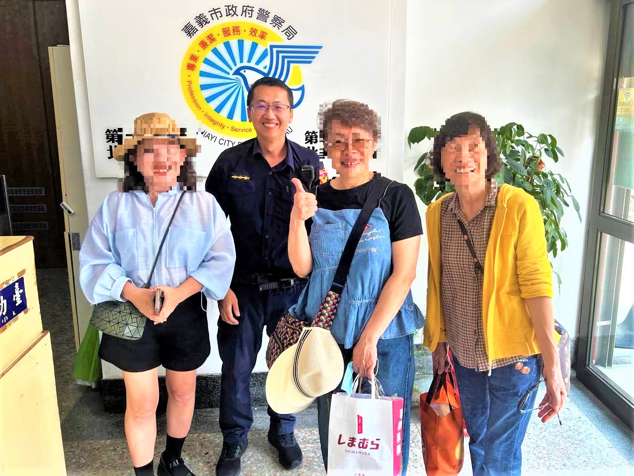 當計程車抵達派出所門口時,從司機先生手上接獲手機心中充滿喜悅,表達誠摯謝意,也請司機先生稍等,順便搭車前往別處並邀請一同留影合照,張婦失而復得的心情才放下心中大石,緊張情緒放鬆許多,向在場的員警及熱心的司機先生頻頻道謝,直呼「感謝有你們的熱心幫忙,嘉義市警察最有效率」。