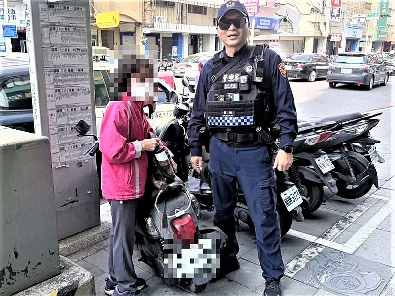 警方得知車牌後通知值班同仁調閱路口監視器,確認該車輛當日行駛路線,婦人於當日最後騎車影像為沿中山路東向西行駛,警方突然想起中山路公車總站附近皆有機車停車位,於是警方駕駛巡邏載婦人至中山路與新榮街口,接著陪同婦人徒步執行小順風,果不其然於公車總站旁發現婦人的愛車停放在機車停車格內,婦人見到機車激動得開心不已。
