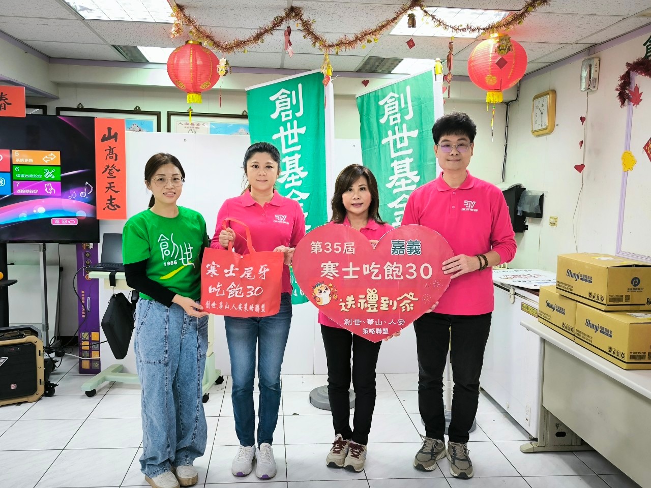 創世基金會表示,該會已連續35年舉辦「寒士吃飽30」尾牙活動,今年繼續推動「送禮到家」,在1月13日至24日期間,全台同步送出近14,000份年禮與應急紅包至植物人家庭及弱勢族群,誠摯邀請社會大眾一同參與送愛,讓每個角落都能過個好年。