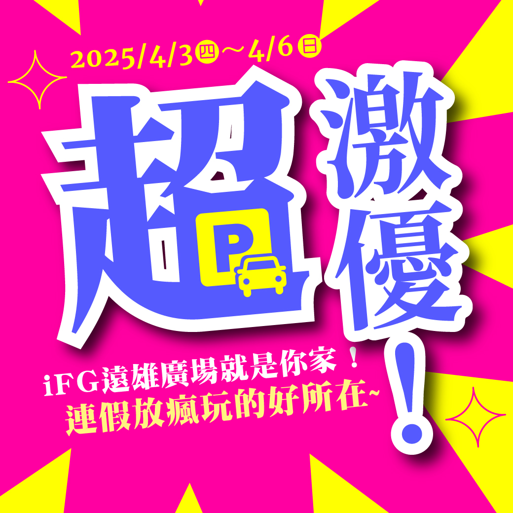 這次連假,iFG遠雄廣場特別推出一系列活動,讓消費者玩得開心、逛得盡興,1.全日停車免費送:4月3日至4月6日連假期間,當日消費滿2,000元,即可兌換停車場全日時數折抵券,讓開車族輕鬆逛街無壓力。2.湯姆熊代幣免費拿: 只要出示iFG遠雄廣場APP會員與當日不限金額消費發票,就能免費領取4枚湯姆熊代幣,數量有限,送完為止。3.造型彩繪&氣球:連假期間,會員憑當日不限金額消費發票可免費兌換造型彩繪或造型氣球,讓小朋友變身最吸睛的童萌時尚達人。4.FUN CLUB放瘋玩加碼送野餐墊:4月1日至4月6日,於指定遊樂櫃位單筆消費滿500元即可集1點,集滿2點還能免費兌換實用的「兩用野餐墊」,數量有限,送完為止。5.校園才藝秀: iFG遠雄廣場邀請各大校園團隊帶來精采的才藝演出,連假期間每日下午兩點,在1樓「藝想花園」舞台,將有舞獅隊、風火輪特技、森巴鼓等表演,展現孩子們的活力與創意,現場觀眾也能近距離感受青春的熱情。6.萌享星球市集: 4月5日與6日限定登場,集結美食、文創與公益攤位,並特別設置「小小職人體驗」專區,適合親子一同參與。7.3F瘋玩樂園暢玩優惠:超多樂園專屬暢玩優惠,等大家來瘋玩一夏。