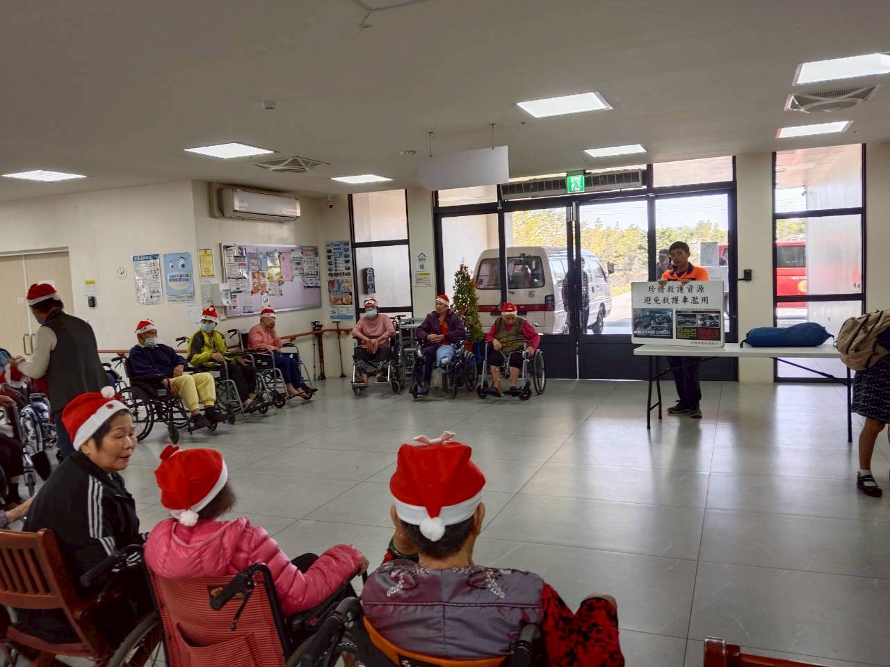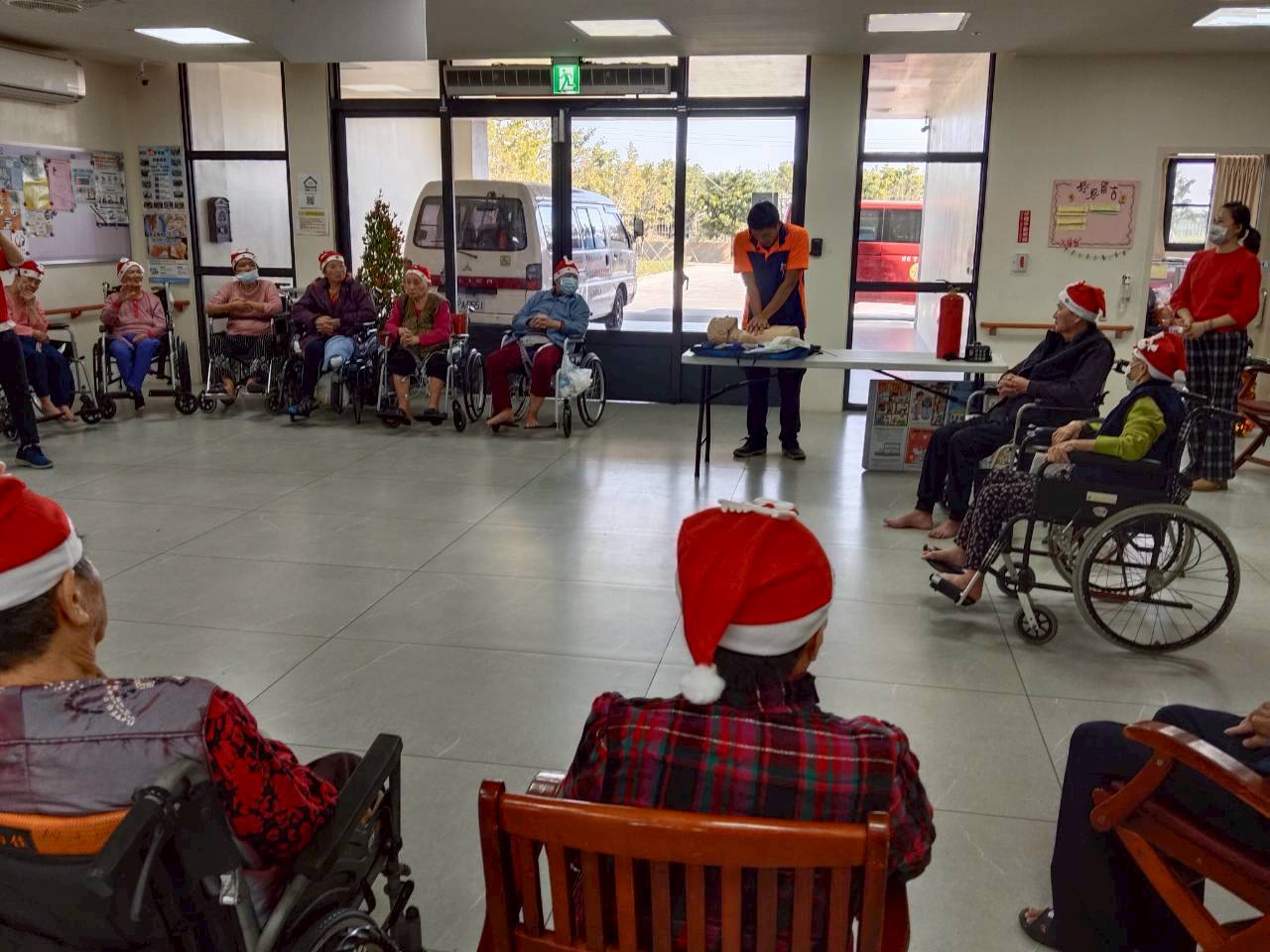 四湖分隊於12月25日派員前往轄內天禧長照中心進行急救宣導,針對CPR部分給予正確觀念-用力壓、快快壓、胸回彈、勿中斷,另外AED的及早介入極盡速撥打119的重要性,長照中心員工們獲益良多,進而提升院前的救護鍊品質。