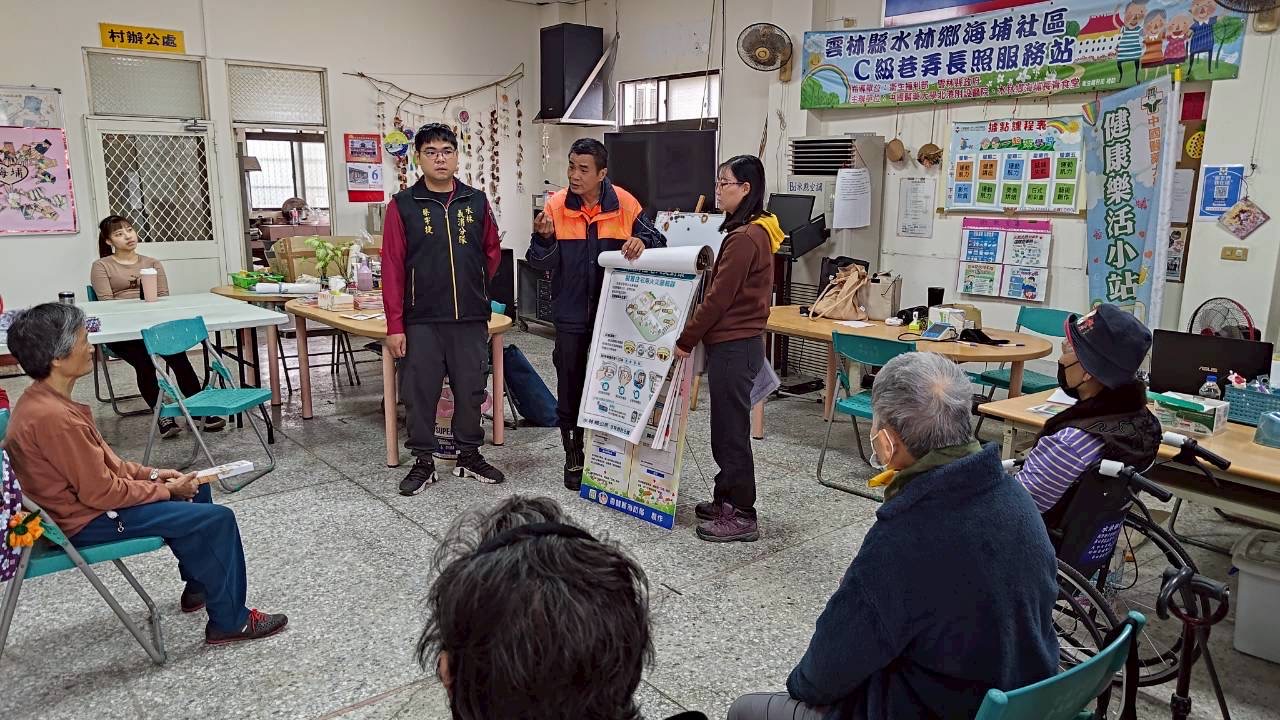 115年2月10日水林分隊聯合警、義消、水林公所人員實施春節、元宵節期間防火安全,本分隊選定轄內戶政、衛生所及長青食堂,此類場所皆以成人及長者居多,近月來水林轄內發生多起住宅火警,為讓水林轄內居民多一份防火觀念少一分損害。