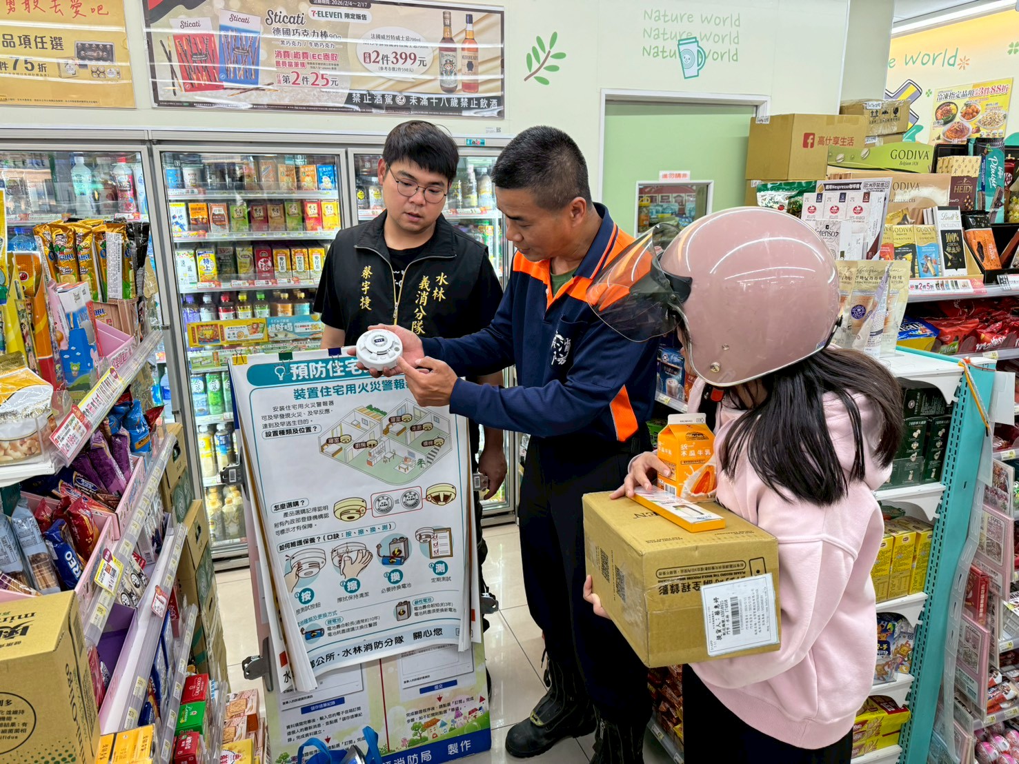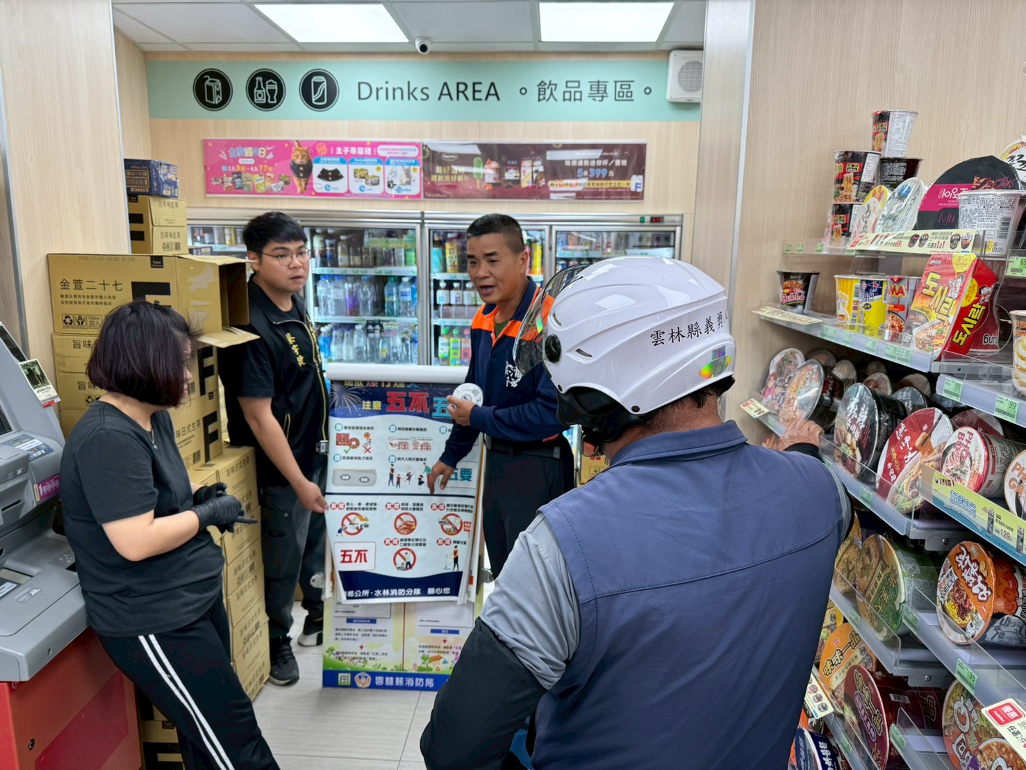 春節已近尾聲緊接元宵節腳步聲將近,水林分隊為提高轄內居民防火防災意識,多一份準備少一分災害宣導理念,於2月28日選擇出入不定年齡層的便利商店為本次防火、防災宣導活動地點。