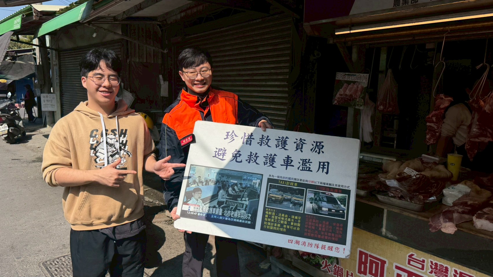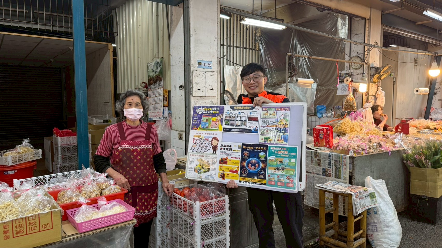 防火觀念深入社區、貼近民眾生活,雲林縣消防局四湖分隊於2月16日前往熱鬧的四湖市場辦理防火宣導活動。趁著市場人潮絡繹不絕之際,消防人員穿梭攤位之間,以淺顯易懂的方式向鄉親說明居家防火重點,現場互動熱烈,氣氛活絡。