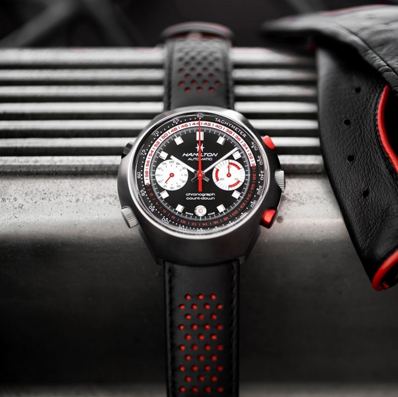 隨著自動計時碼表機芯問世後,漢米爾頓與合作品牌分別以不同面向的設計考量,各自打造自家專屬的計時腕錶。過往在飛行領域已達專業頂峰的漢米爾頓,將最新機芯技術,轉移到賽車測速與太空飛行應用,對應當時民間與軍方的不同需求,設計出結合征服速度與搭載特殊功能的零件模組,以滿足對於極速定義的嶄新標準。為了善用全世界第一枚自動上鍊計時碼表機芯的珍貴資產,漢米爾頓吸納各方的寶貴意見與專業需求,同時必須做出與合作品牌的市場區隔,推出全球第一款倒數自動計時腕錶 - CHRONO-MATIC E,搭載超越市場尋常錶款的強大複雜功能,展現顛覆力道的曠世奇想,成為當時科技含金量極高的絕代經典。