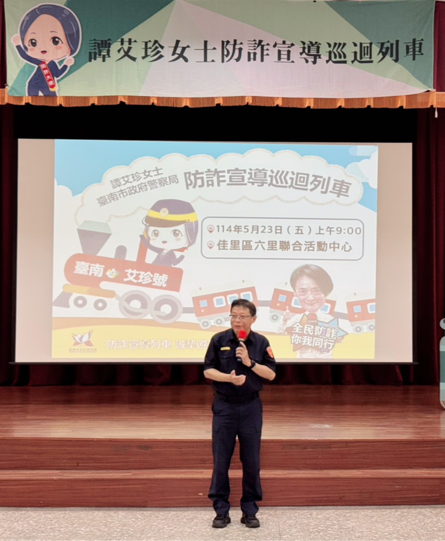 【記者邱仁武/台南報導】台南市今年特邀藝人譚艾珍擔任防詐大使,今(23)日防詐宣導巡迴列車駛入佳里區,佳里分局長施衣峯強調,期望藉由譚艾珍女士自身受騙經驗,鼓勵民眾如不幸遭遇詐騙,不論金額多寡,都應勇於報案。