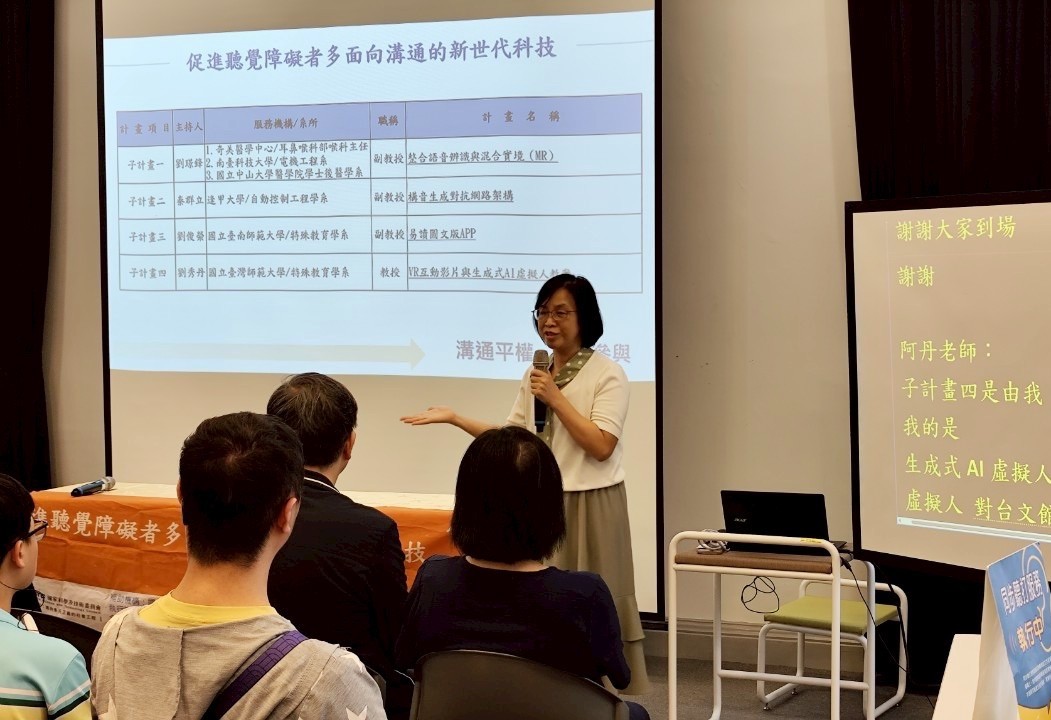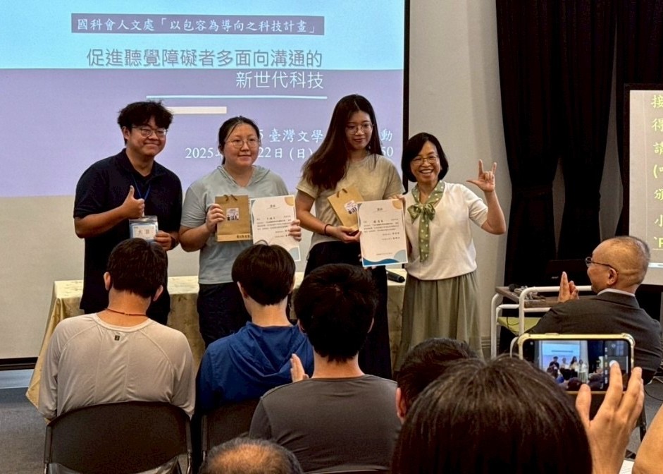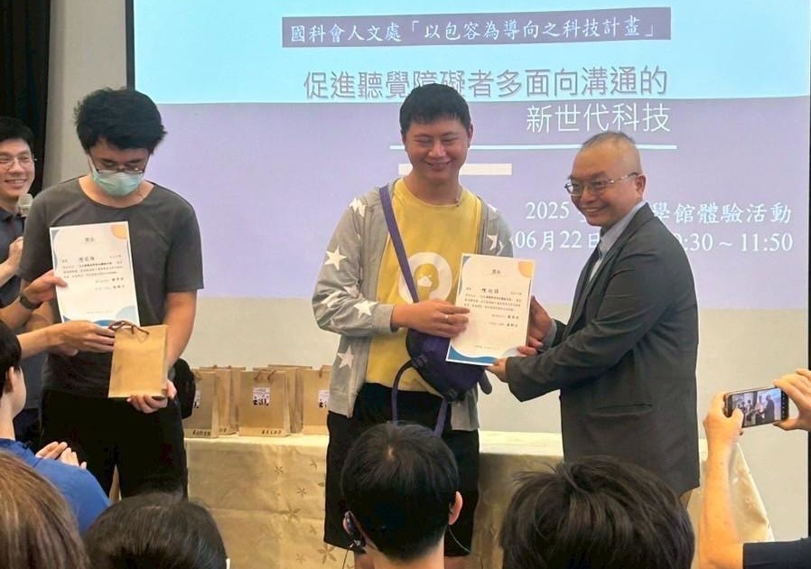 為推動科技應用於聽障者溝通與社會參與,國立臺灣師範大學教授劉秀丹領導的研究團隊,在國科會「以包容為導向之科技計畫」的支持下,研發《促進聽覺障礙者多面向溝通的新世代科技》,22日在國立臺灣文學館舉辦一場結合教育、體驗與溫度的推廣活動,現場反應相當熱烈。多位民眾很有感的表示,「創新科技真的改變溝通與生活」、「虛擬人讓我練習如何和人溝通,提升溝通的能力」。