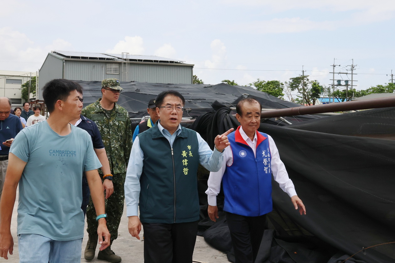 【記者邱仁武/台南報導】受颱風「丹娜絲」侵襲後,台南各區持續推進相關復原作業。台南市長黃偉哲13日上午前往七股區西寮及下營區勘災,關心災情並慰問當地居民,肯定第一線救災人員的努力,也聽取在地民眾與農民的實際需求,並現場指示相關協助作為。