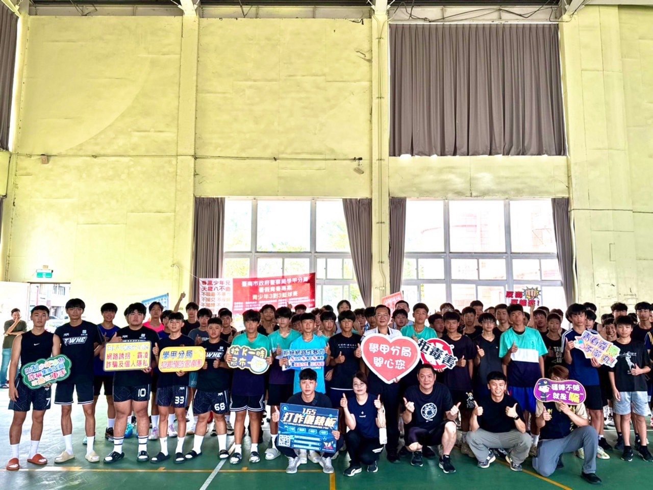 【記者邱仁武/台南報導】台南市政府警察局學甲分局為落實「青春專案」政策,強化青少年正向休閒與法治觀念,今(27)日舉辦「3對3籃球賽」,邀請青少年朋友組隊參加比賽,分局長巫建德強調結合眾多犯罪預防等宣導議題,透過運動賽事深化青少年法治意識,揮灑汗水拒毒詐。