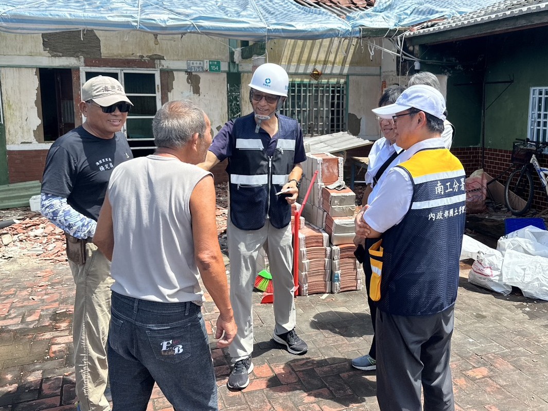 【記者邱仁武/台南報導】內政部國土管理署署長吳欣修昨天偕同南區都市基礎工程分署長林敬賢、參事韓榮華、佳里區長林耿漢及海澄里里長楊定昌,前往佳里區一處弱勢家戶修繕案場進行現勘與慰問。
