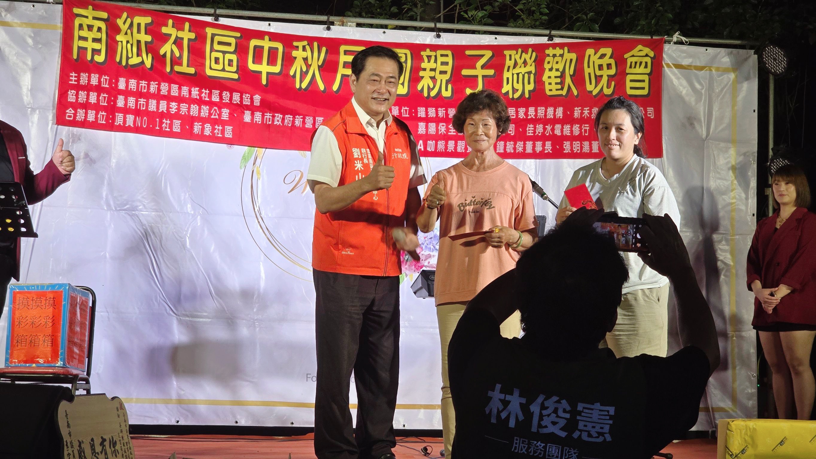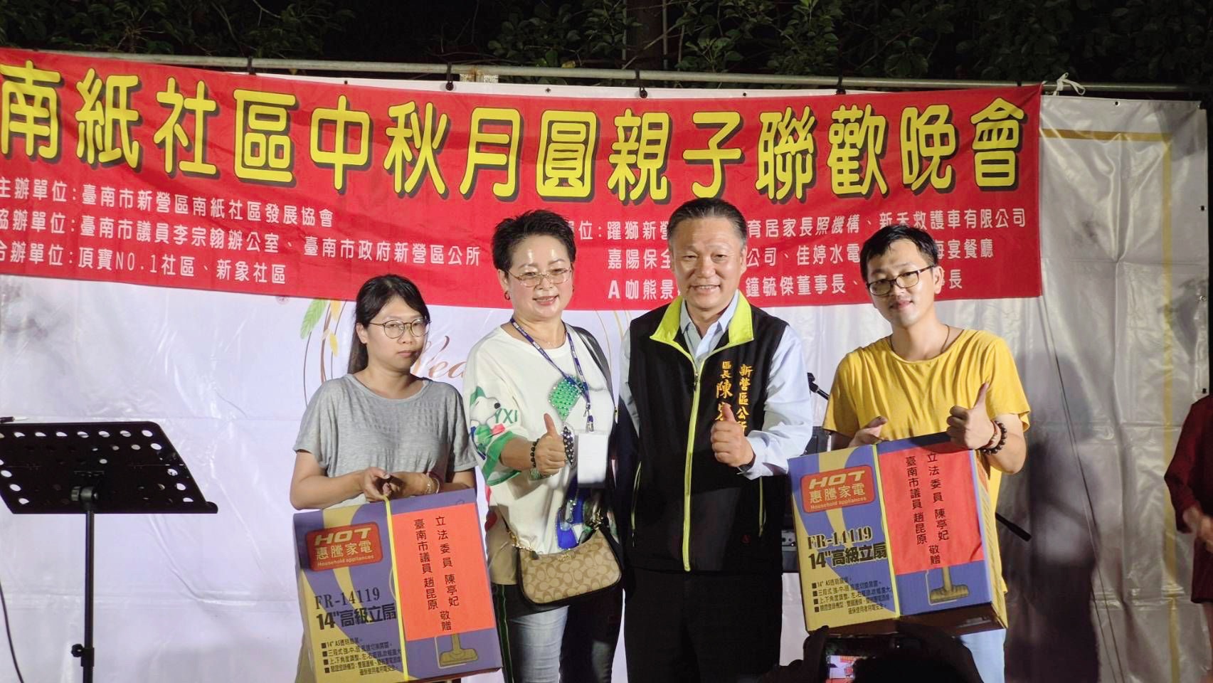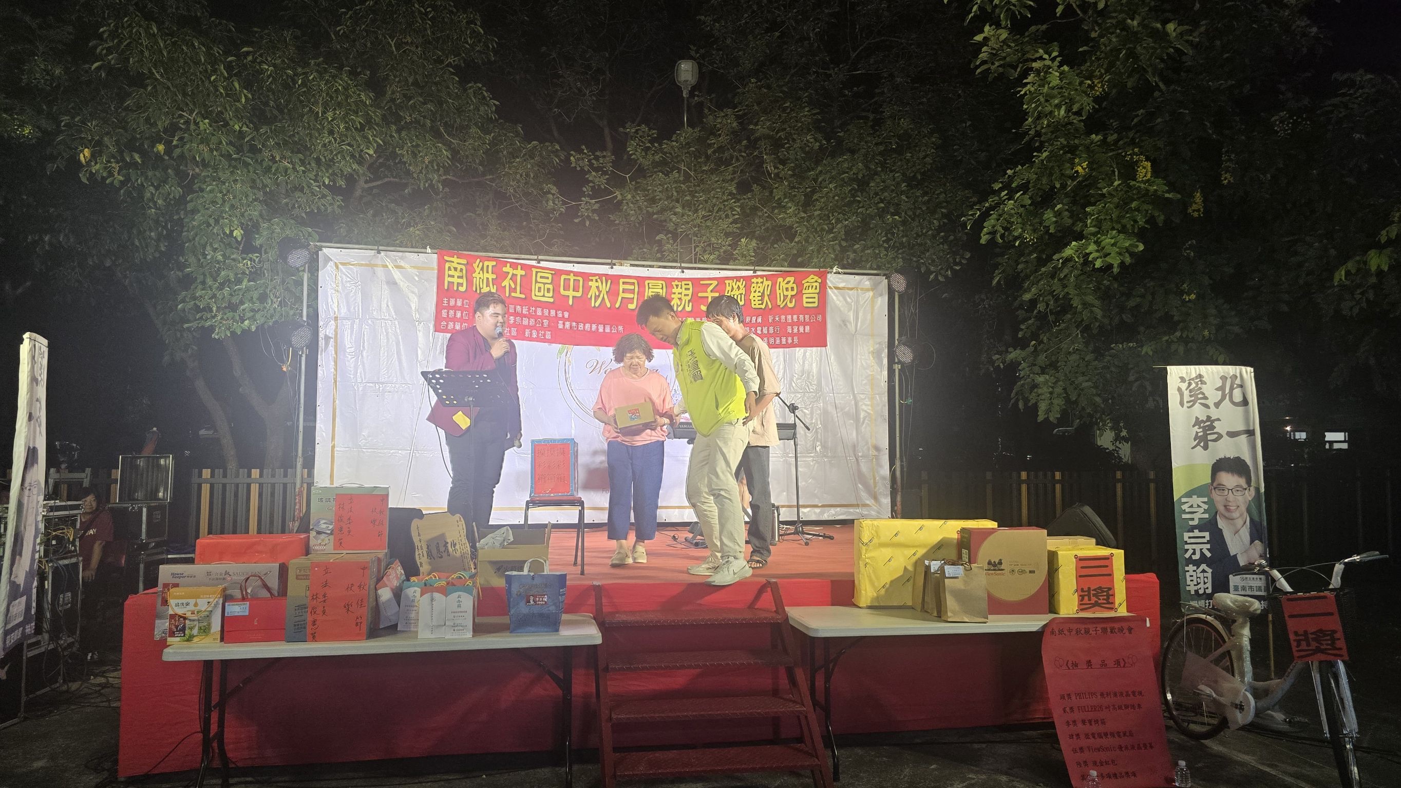 【記者邱仁武/台南報導】台南市新營區南紙社區發展協會,今天晚上舉辦「中秋月圓親子聯歡晚會」,由理事長李秉諺主持,以不同於以往方式用攤車方式代替烤肉舉辦,獲得社區親子民眾喜愛,熱情參與,場面溫馨。