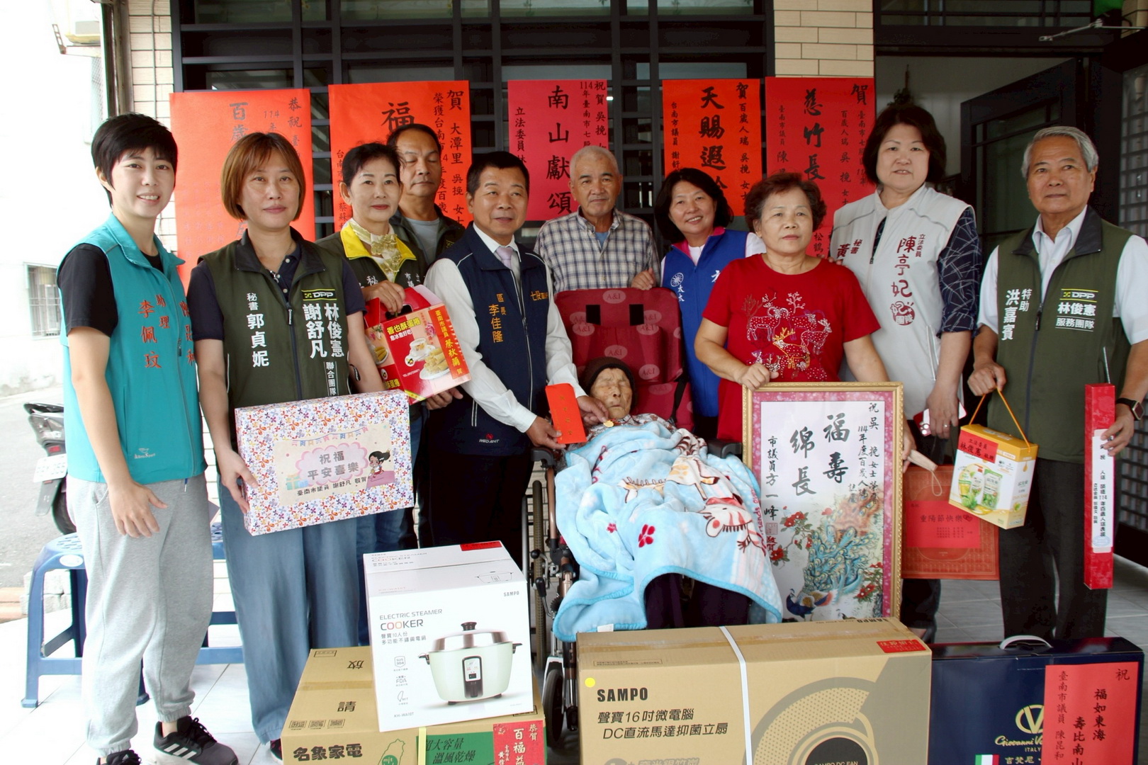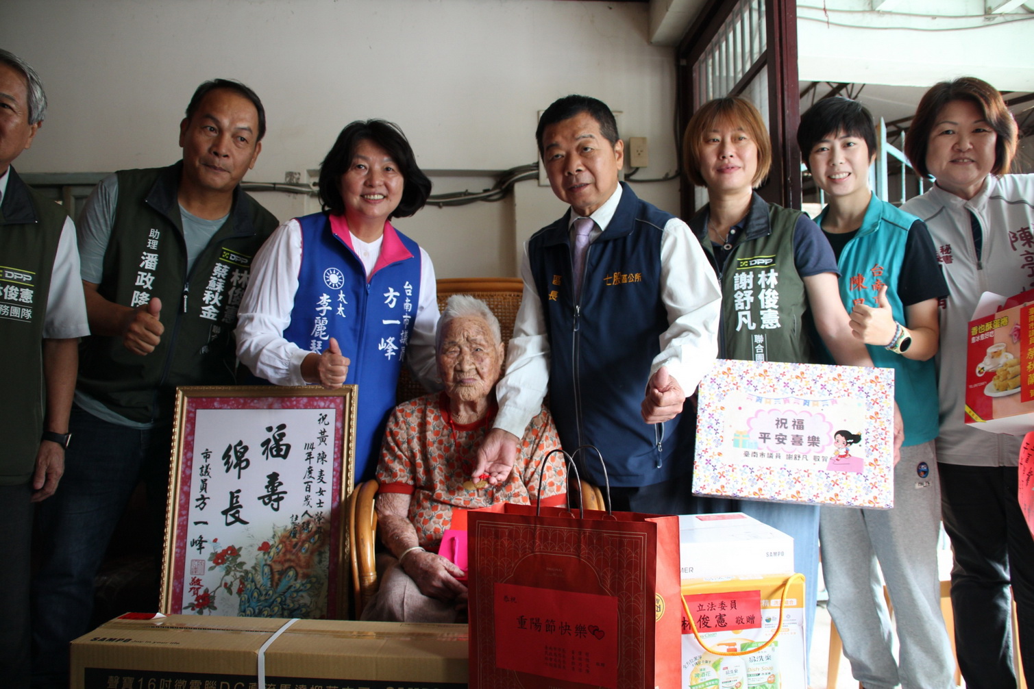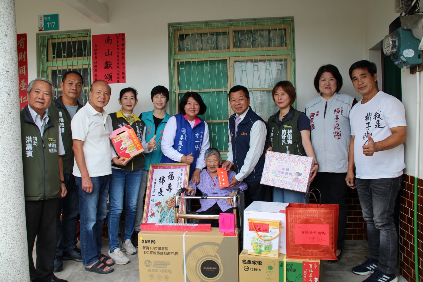 總統府與臺南市政府為傳達崇長敬老溫暖之情,對於今年百歲人瑞分別致贈人瑞禮金、金鎖片等禮品。剛好滿100歲人瑞,總統府致贈金鎖片一個及敬老狀一幅、市府致贈每人重陽節敬老禮金1萬元及匾額一方。已超過百歲的人瑞,總統府致贈金鎖片一個、市府致贈重陽節敬老禮金1萬元及烘碗機1台。臺南市議會更加碼,贈送每位百歲人瑞抑菌立扇及不鏽鋼電鍋各一台。