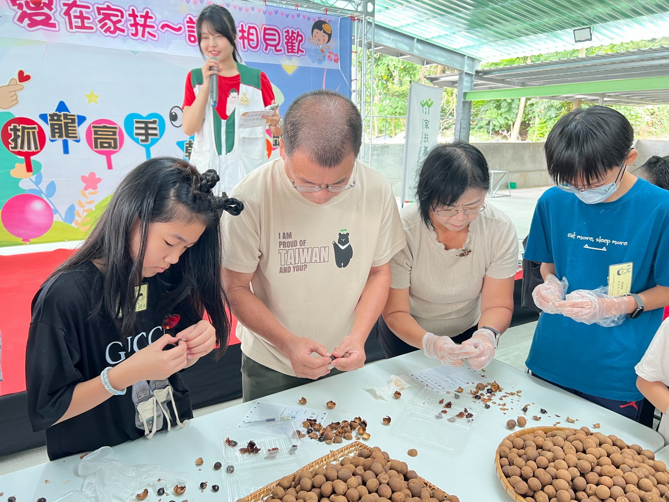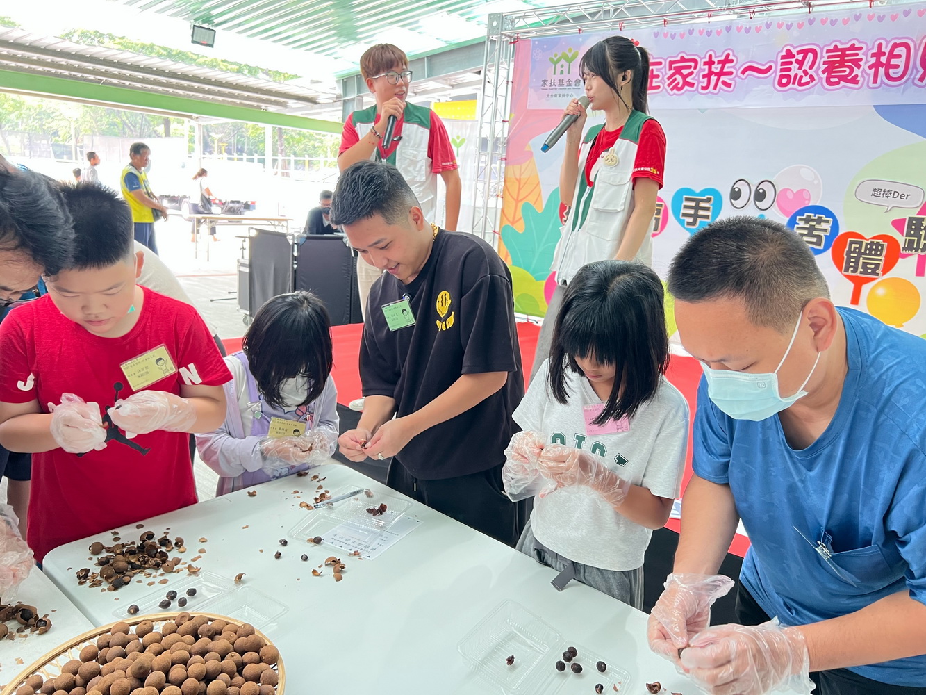 北台南家扶中心主任李桂平表示,今年「2025愛的連線相見歡」活動,特別安排「抓龍高手」活動,請現場認養人及扶助家庭組隊比賽,手剝台南在地東山窯柴燒龍眼乾並秤重後轉換為工資和當前物價,共同體驗弱勢家庭的就業困境和生活甘苦。首次參加相見歡活動,也曾經為認養童的胡皓文,帶著感恩的心回到家扶成為認養人,期待可以像當年鼓勵他成長的認養人一般,也能陪伴家扶的孩子們繼續茁壯。