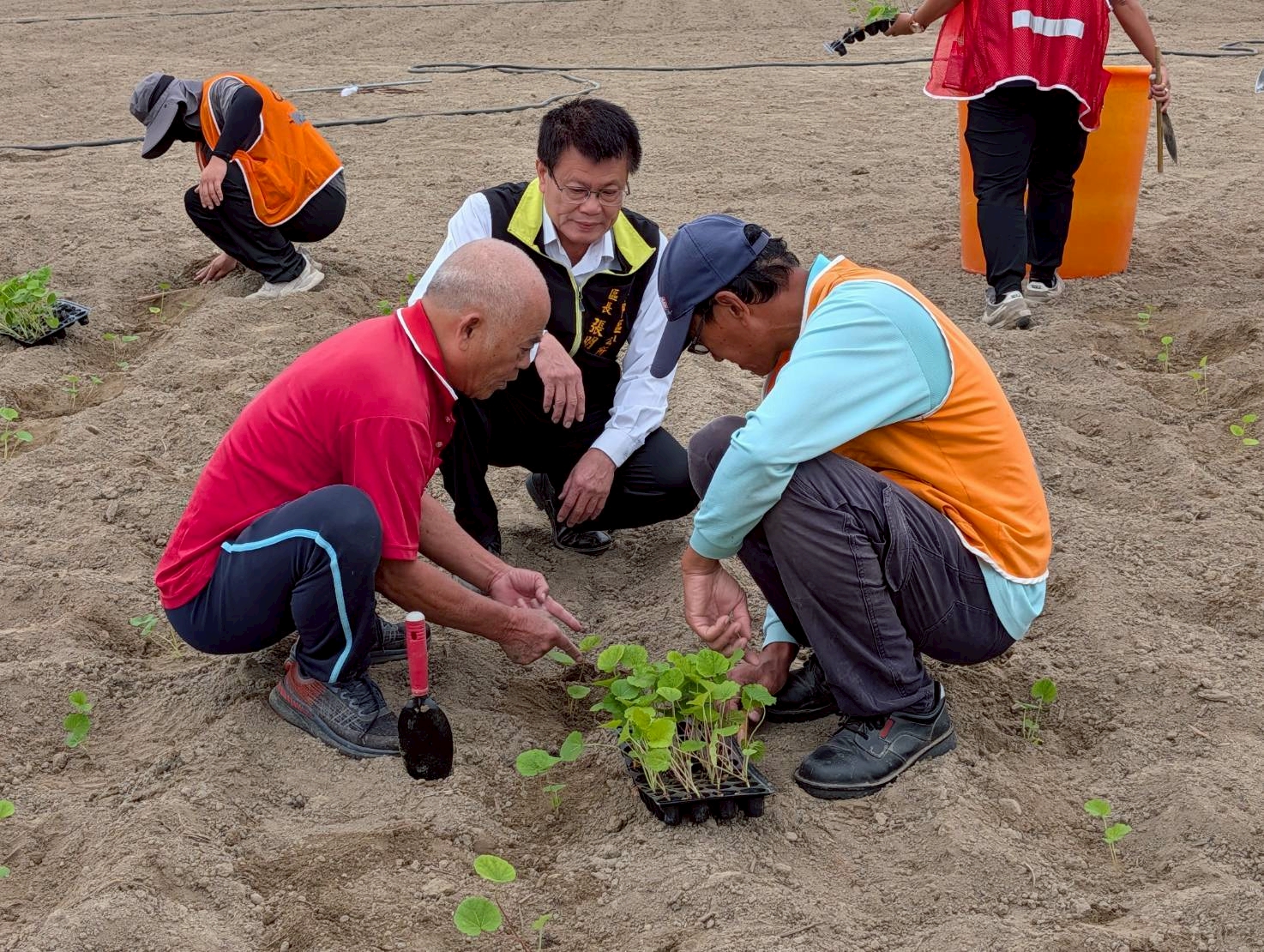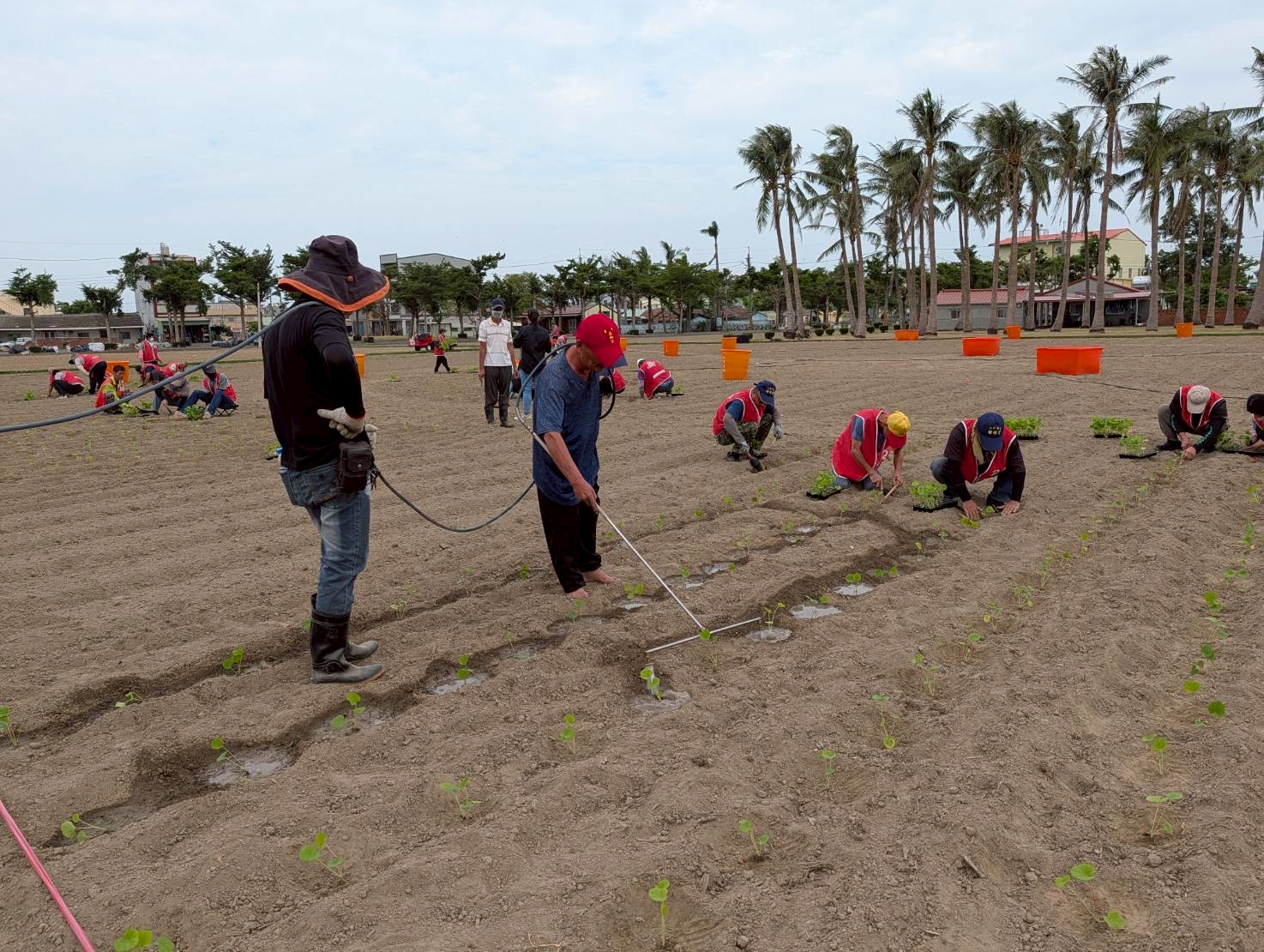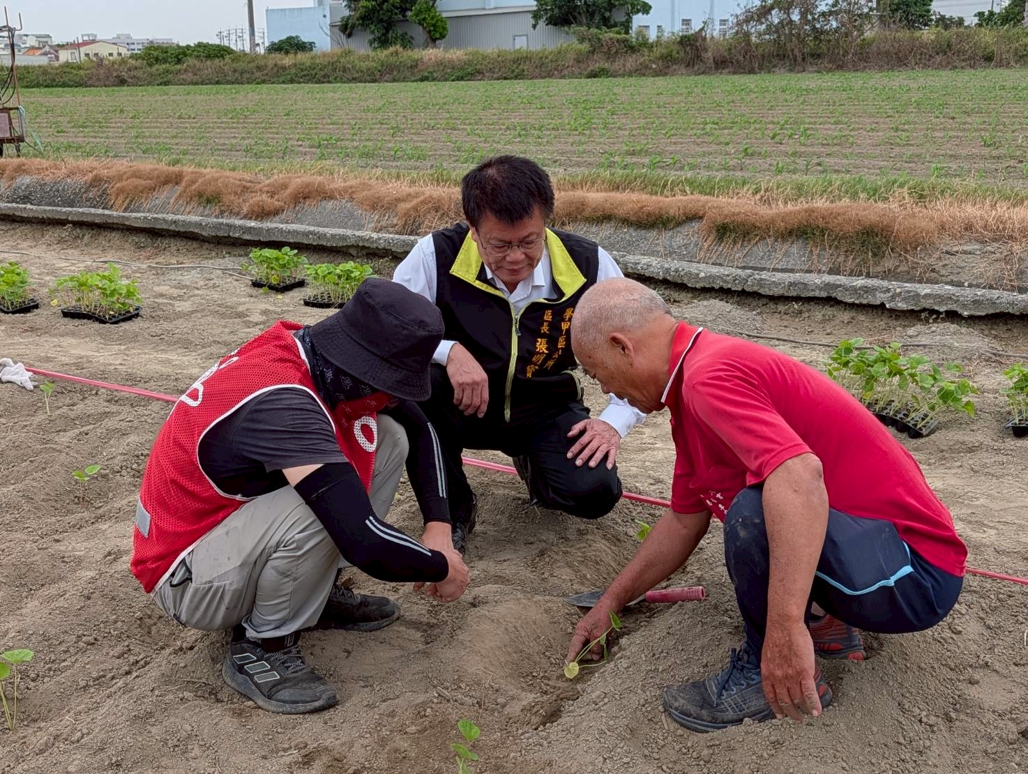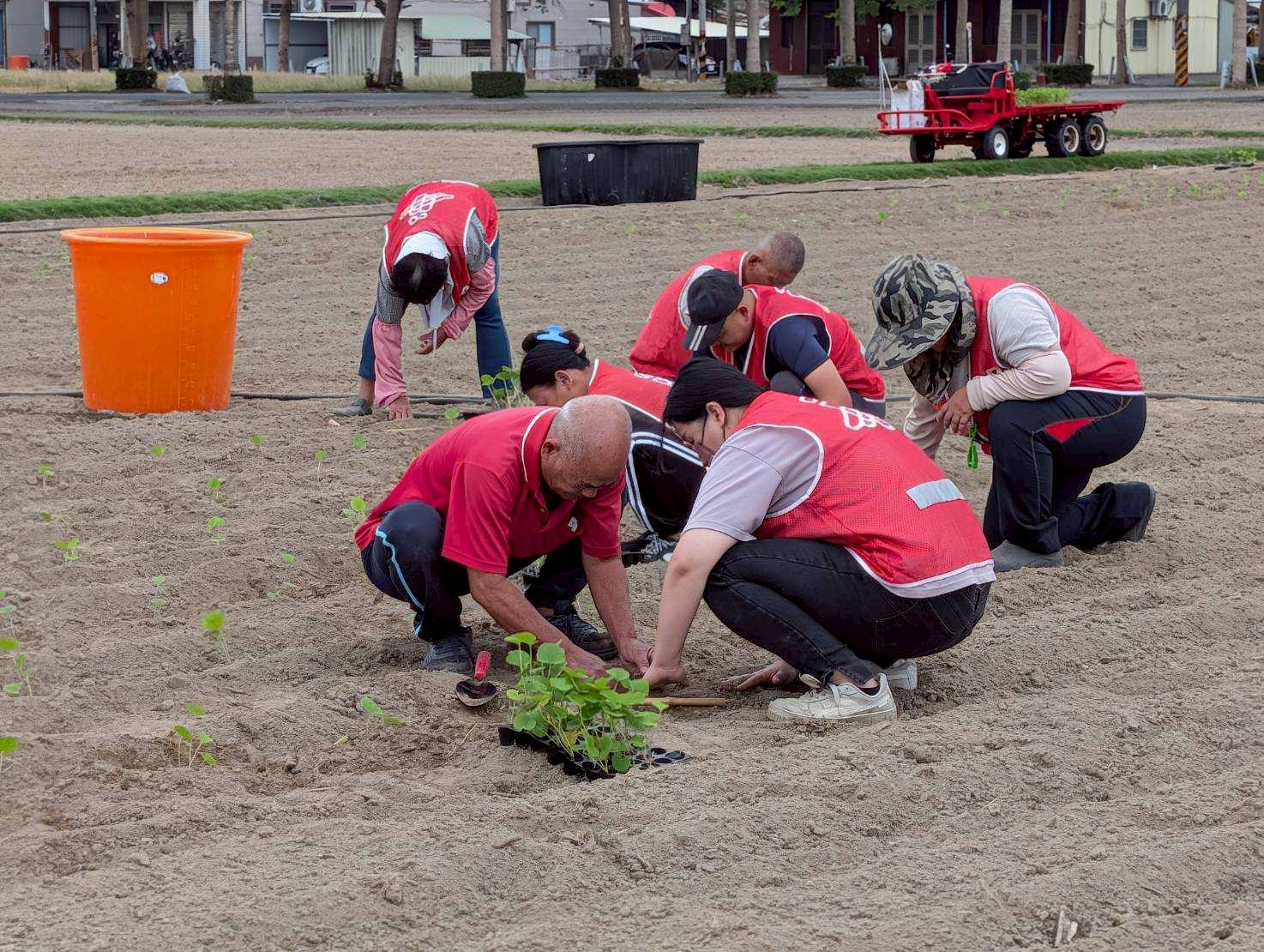 學甲區長張明寶特別前往現場關心種植情況,為辛勞的同仁與社勞人員加油打氣。他也特別感謝台南地方檢察署歷年來專案支援蜀葵花栽植。今年度易服勞役人員分3梯次支援蜀葵花栽植與維護工作,預計投入人力達215人次,協助進行栽種、澆水、除草等作業。在地檢署人員全程監督及邱益在里長專業指導下,許多社勞人員表示首次下田種花,才體會到蜀葵花種植的學問與辛勞,更開心地說要在花開時邀請親友前來欣賞親手栽種的成果。