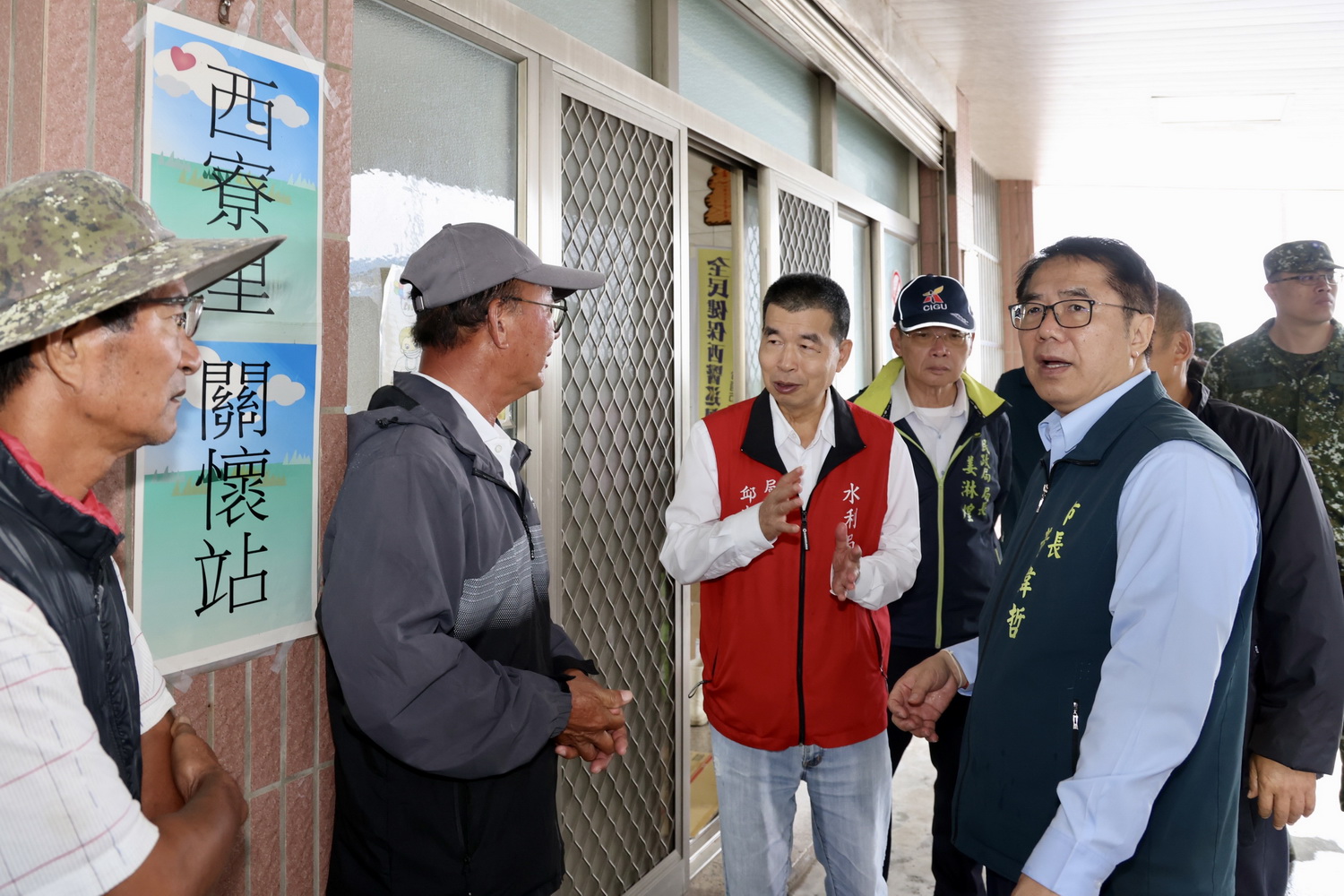 【記者邱仁武/台南報導】中央氣象署顯示今天為「鳳凰」颱風最接近台灣,台南市長黃偉哲一大早前往北門區蘆竹溝漁港、將軍區青鯤鯓漁港、七股區頂山里、七股頂山國小及西寮里視察,了解民眾需求與復原工作情形,做好規劃各項防颱準備,希望防範發生災情發生。