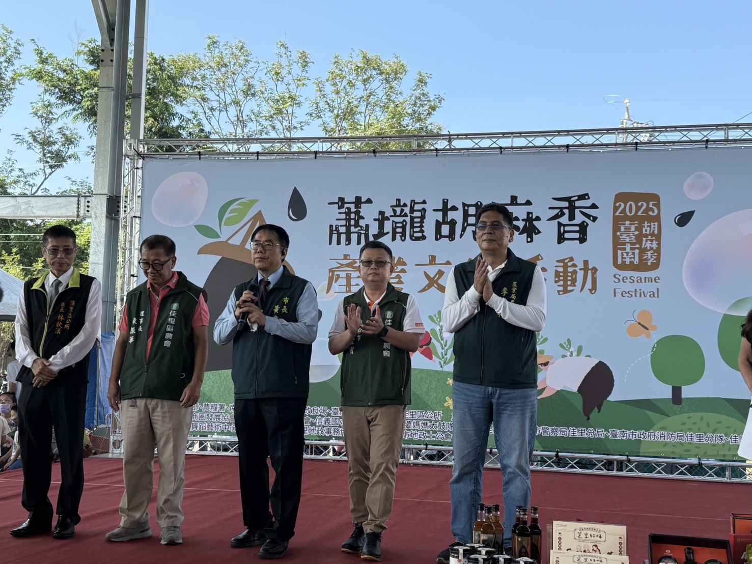 市長黃偉哲表示,台南是國產胡麻最主要產區,原本有西港、善化、安定3大胡麻節,近年又加上佳里,可說是「頂港有名聲,下港尚出名」,胡麻特有的濃郁香氣,深受國人和外國朋友的喜愛。佳里區最近幾年推動胡麻契作、加工及品牌行銷,不僅是地方重要的農業代表,也展現農民堅持品質與創新成果,邀請全國民眾來台南,共享胡麻魅力。