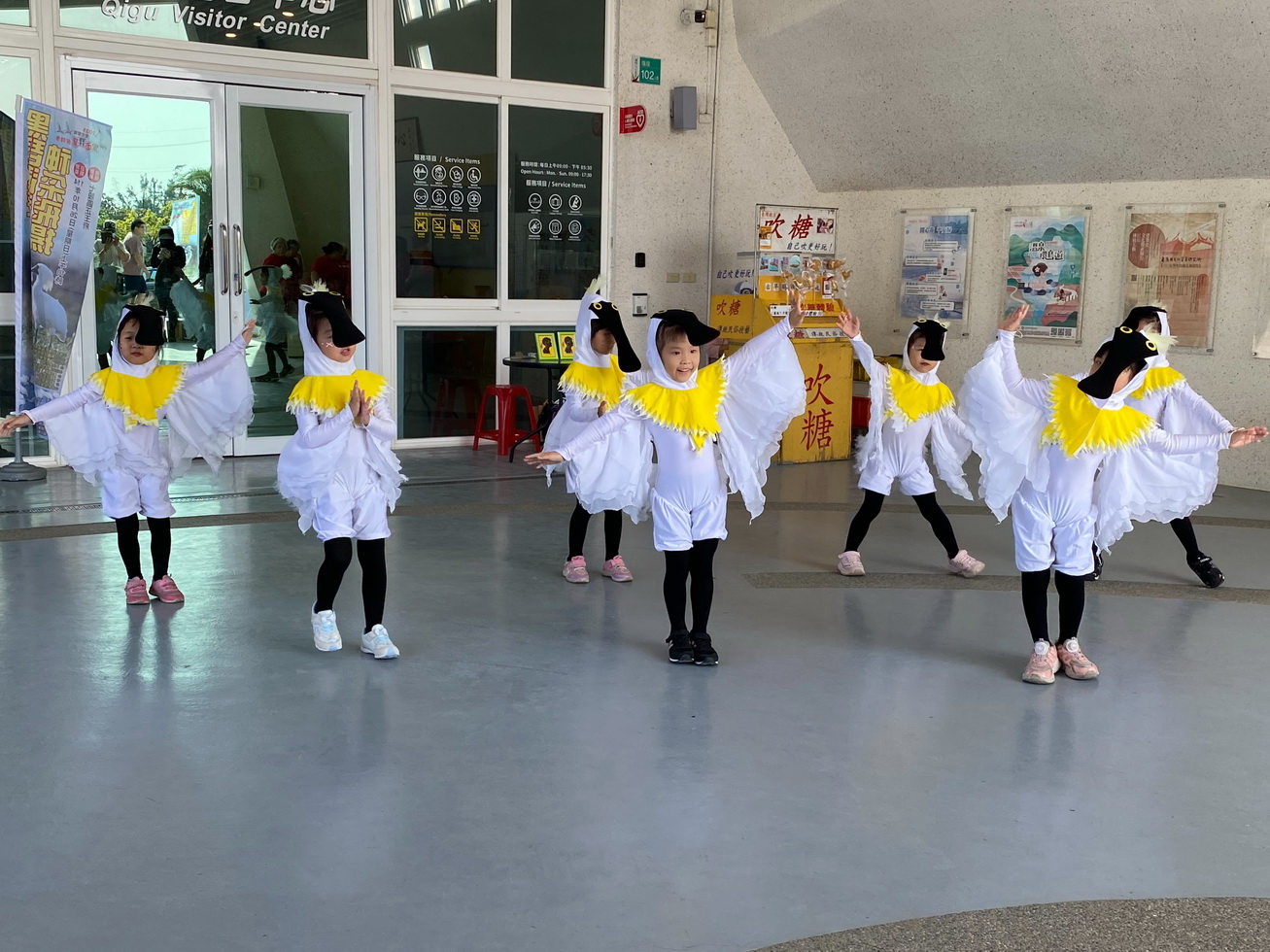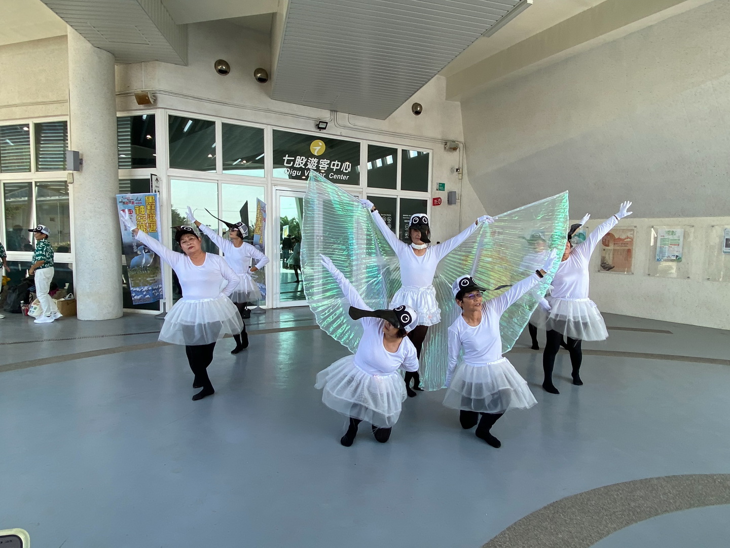 在臺南市立學甲幼兒園園長顏春枝率領8隻小小黑琵愛跳舞,以及西明社區發展協會理事長王美雲帶領表演熟齡黑琵舞蹈、苓保社區理事長蔡木筆率領的「大展宏圖、好運連連串燒組曲」、「懷舊台語老歌組曲」、新榮社區執行長王紋紋率領耆鼓隊表演「一路花開」為3項黑琵文創品展覽揭開序幕。