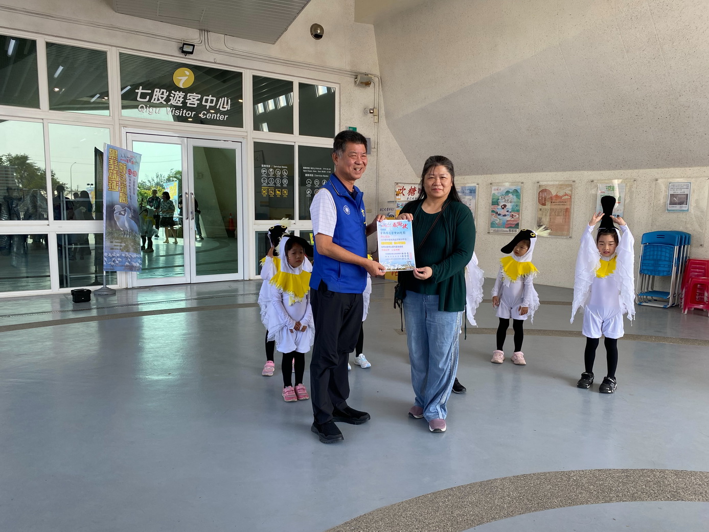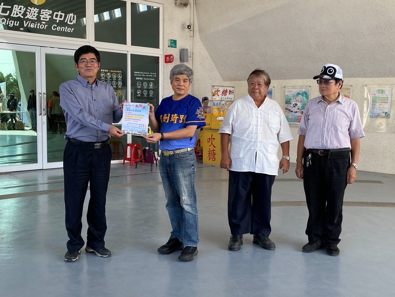 包括台南市議員方一峰、七股區長李佳隆、立委郭國文特助黃熙順、林俊憲特助洪嘉賓、市議員陳昆和秘書李佩玟、交通部觀光署雲嘉南管理處技正蘇昀柏、農業部林保署嘉義分署主人蔡忠誠、農業部生多所七股研究中心助理王曉琪、海巡署南部分署第一一岸巡隊組主任黃名成、赤嵌獅子會秘書陳岑博、【吹糖人蕭朗】、【剪紙人王丁乙】、【鋁罐人李家琦】、竹橋國小校長謝宇笙、保育科長朱健明、生態保育學會總幹事蔡振賢及執行祕書陳淑貞等人為3項文創品剪綵揭幕。