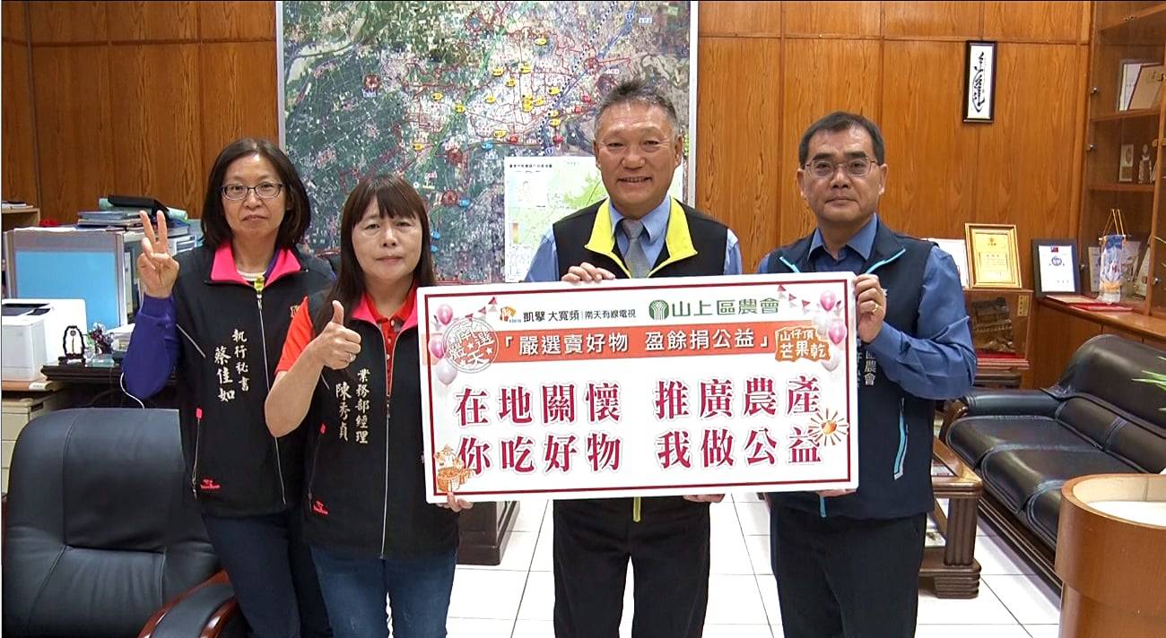 南天有線電視總經理王麗環表示,南天電視長期關懷地方公益,也善用社群平台協助小農、地區農會行銷台南在地農特產品,透過媒體社群力量將山上區好吃的芒果乾銷售出去,網路無遠弗屆,就連遠在日本青森臉友,更連續幾年跨海訂購。連續六年芒果乾公益拍賣,一來為農產加工開拓銷售管道,二來活動結束後提撥盈餘捐贈社福團體,一舉數得,真切發揮「你吃好料、我做公益」活動理念。