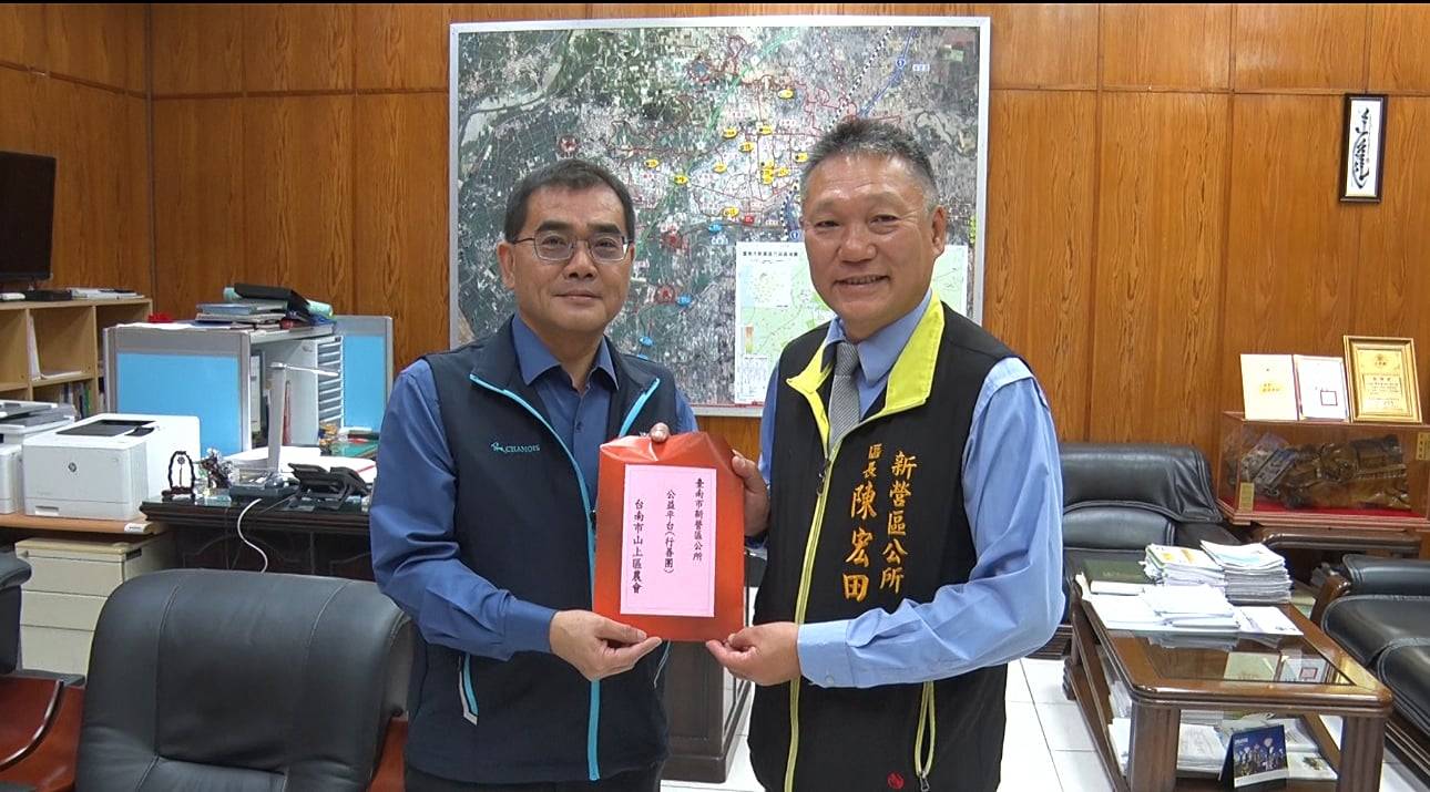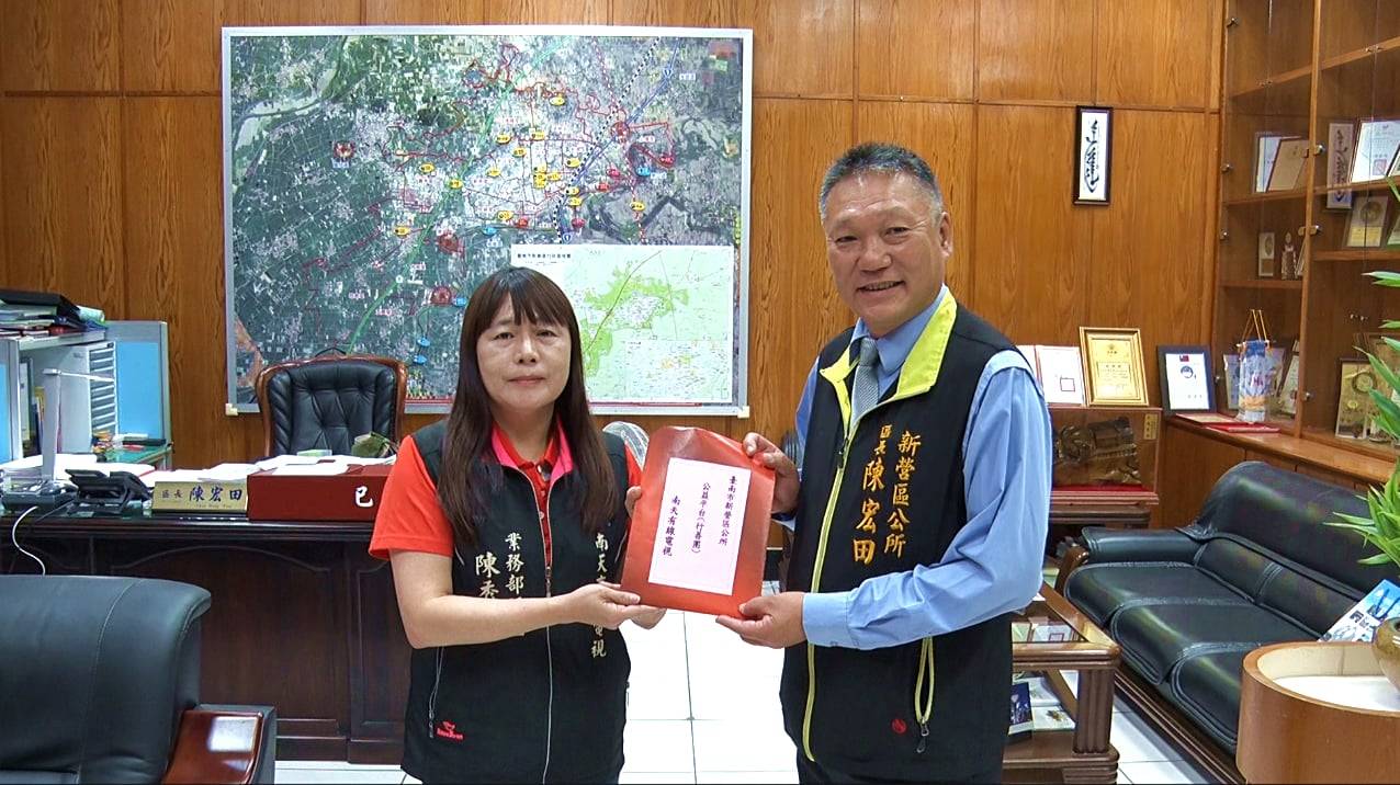 【記者邱仁武/台南報導】南天有線電視協助行銷優質在地農產加工品,與山上區農會,連續第6年合作,透過南天地方新聞臉書,舉辦【今夏”芒”這回-芒果乾公益拍賣】,19日捐贈一萬元給新營區公益平台(行善團),作為公益關懷使用。南天電視也追加捐贈20箱村里平安箱,新營區長陳宏田代表受贈,也回贈感謝狀,感謝南天電視及山上農會推廣農產不忘關懷弱勢的用心。