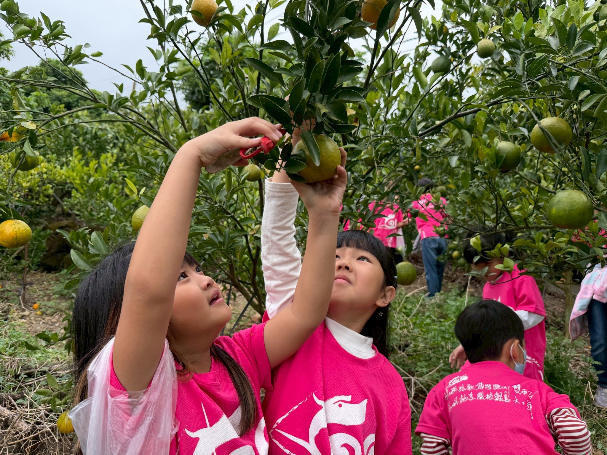 離開青山國小後,北門國小師生接著前往興一道場旁的橘子果園,享受採果樂趣。聽完果農叔叔的解說之後,師長們一路陪著孩子們挑選橘子,教導他們細心觀察並提醒剪枝的小細節。