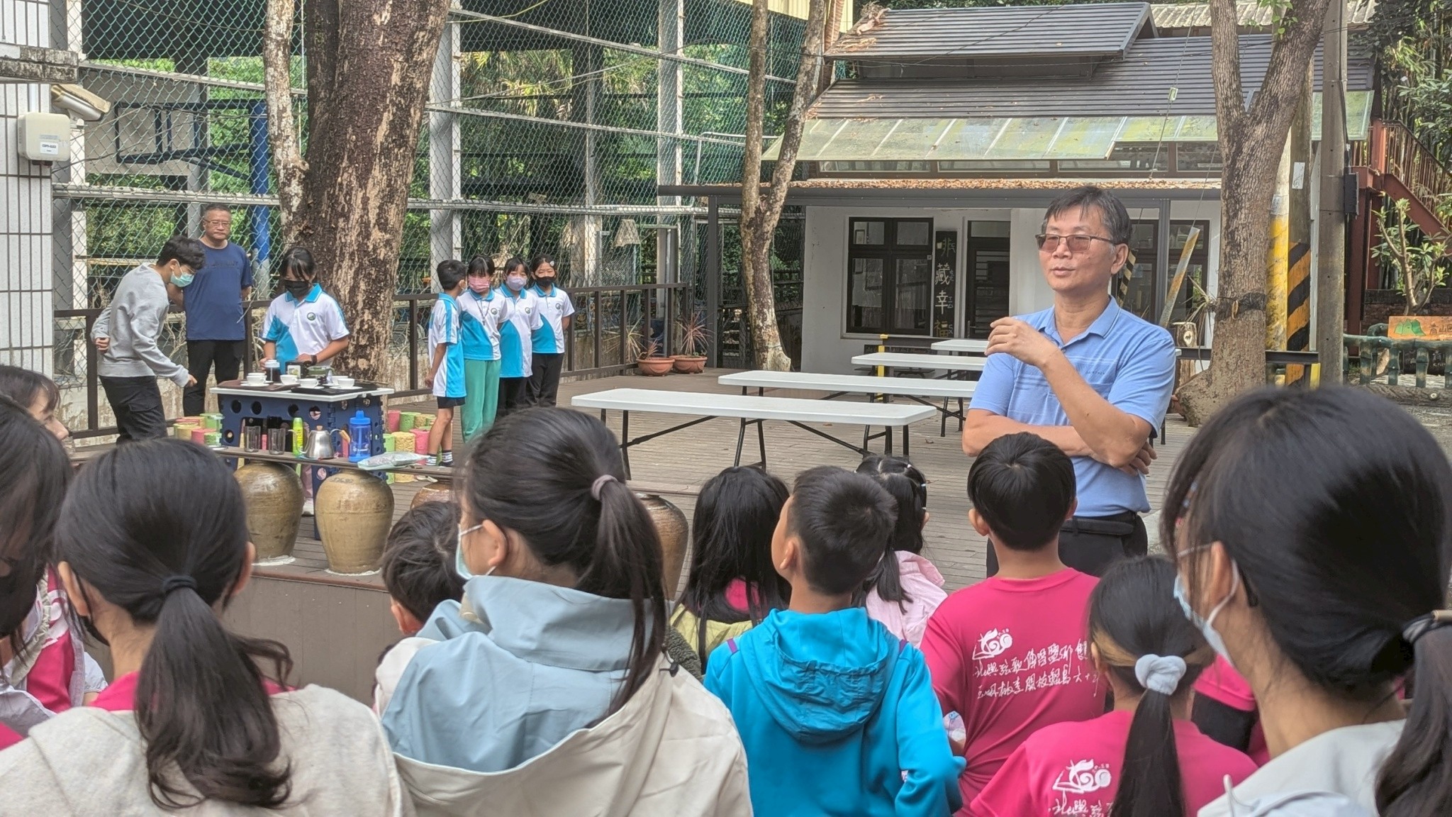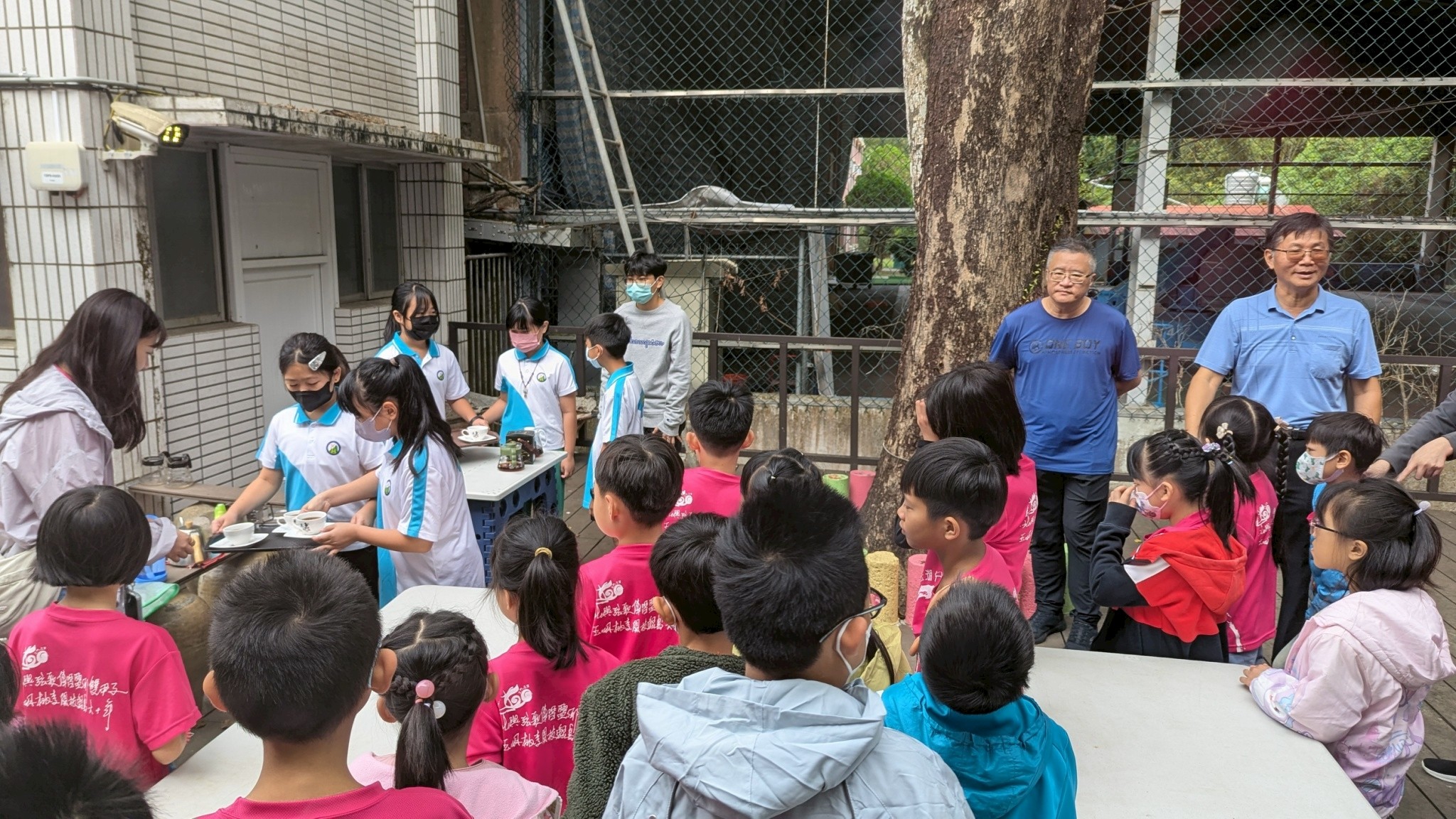 北門國小學生首先前往東山區青山國小進行校際交流活動。學生一踏入青山國小,便聞到空氣中淡淡的咖啡香,並看見四周美麗的山林景色,感到興奮不已。青山國小開設有校訂咖啡課程,並由小小解說員為來訪師生服務,表現得超級專業,還為師長獻上了手沖咖啡。