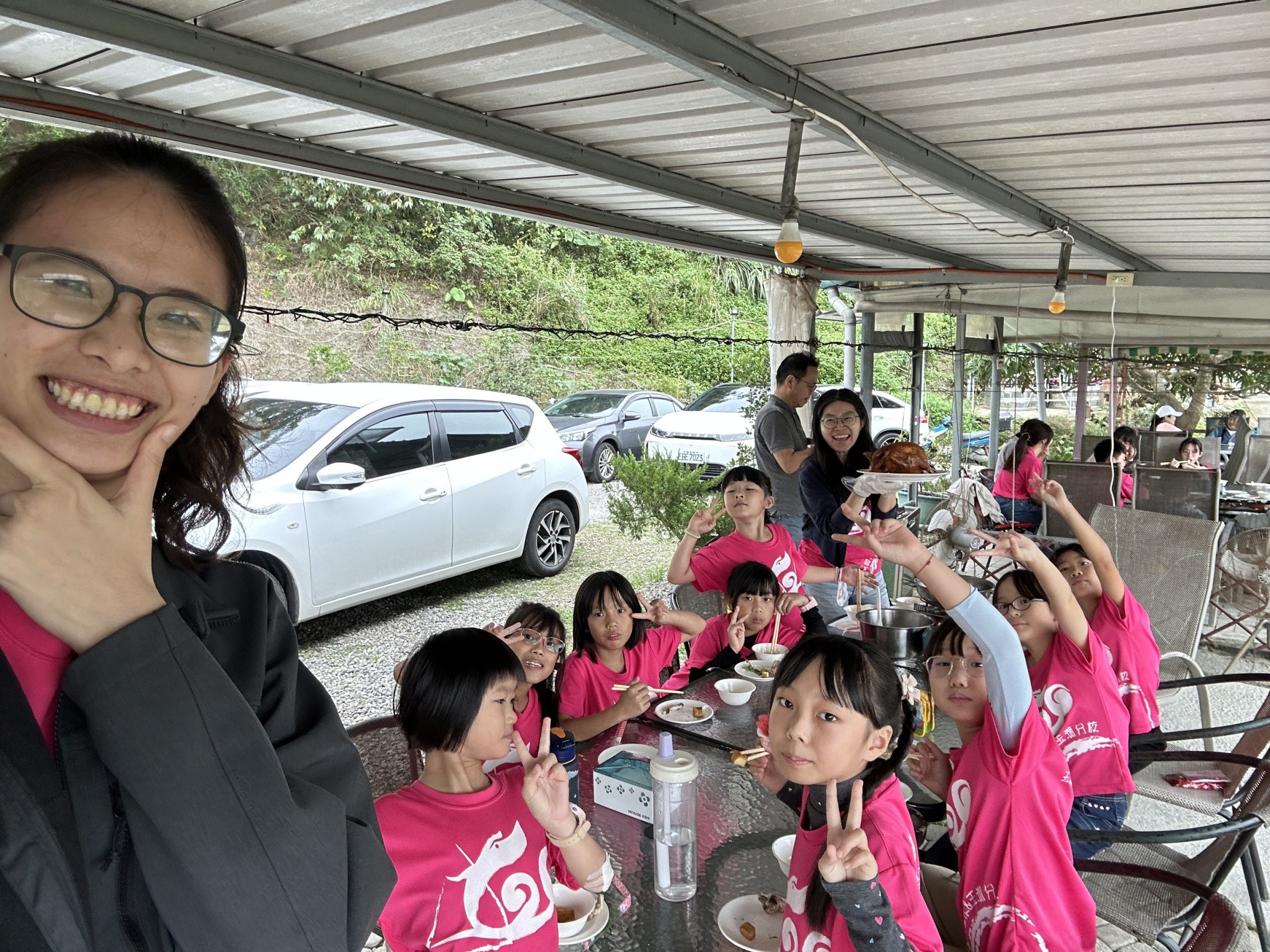 中午,大家享用了在地料理的烤雞大餐,包括桶子雞、藥膳雞湯、三杯山豬肉及龍鬚菜等,菜色豐富又美味,師生大快朵頤,個個吃得津津有味。