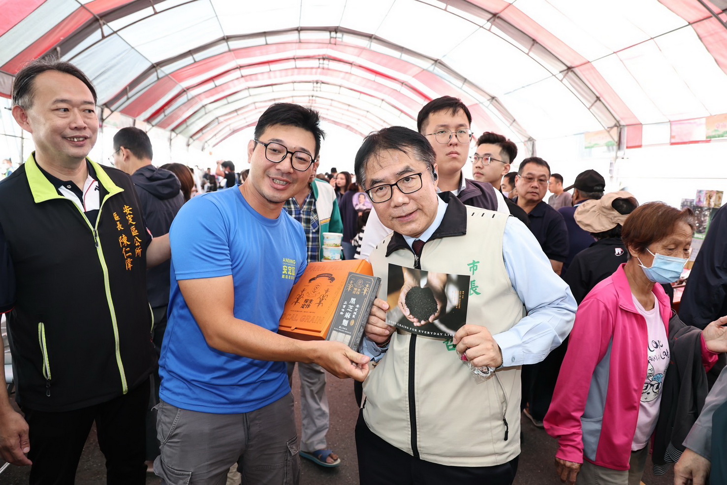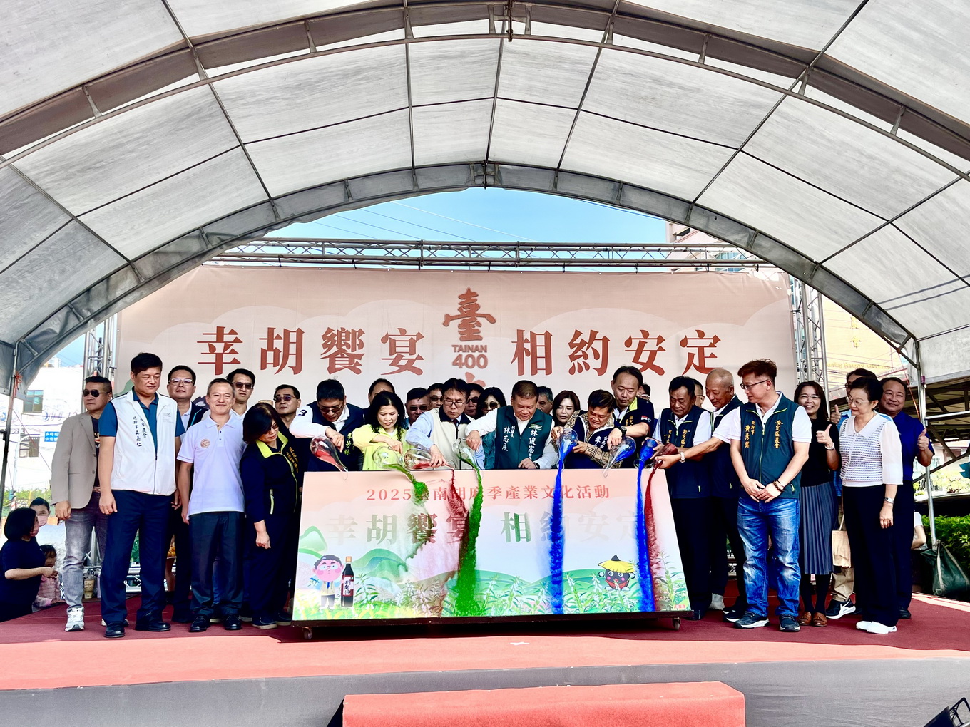 【記者邱仁武/台南報導】台南胡麻季產業文化活動接力登場,安定場「幸胡饗宴 相約安定」,今(22)日在安定區公所西側停車場登場,台南市長黃偉哲與立委林俊憲、郭國文,以及台南市議會副議長林志展、議員陳碧玉、李文俊、蔡麗青特別到場致意,並推薦各地民眾前來安定選購胡麻產品,感受胡麻的溫暖與盛宴。