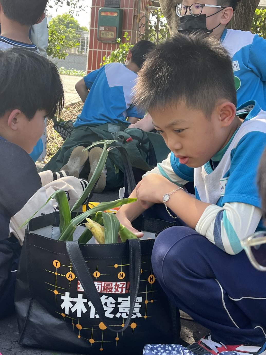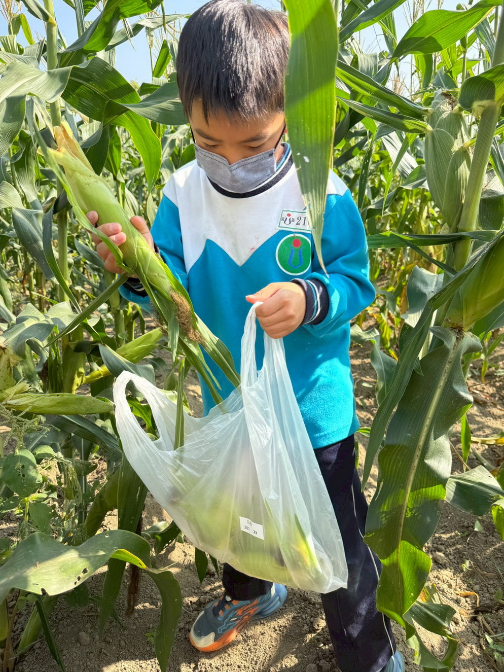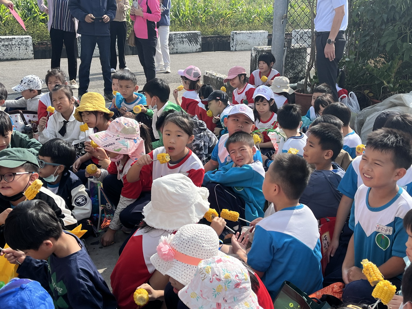 這次活動由校長黃文信溫暖帶領,並由四處室主任全程陪伴,加上學校老師與志工媽媽們的協助,使整個過程在關懷、安全與喜悅的氛圍中進行。孩子們走進玉米田,學習如何挑選成熟的玉米、體驗摘採的技巧,也看見土地孕育食物的力量。