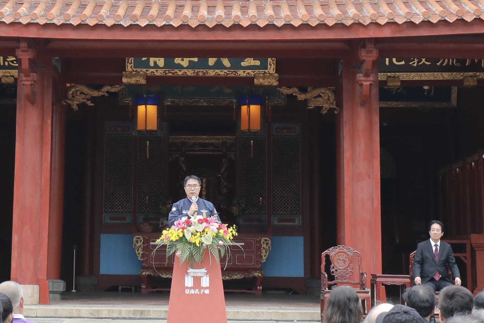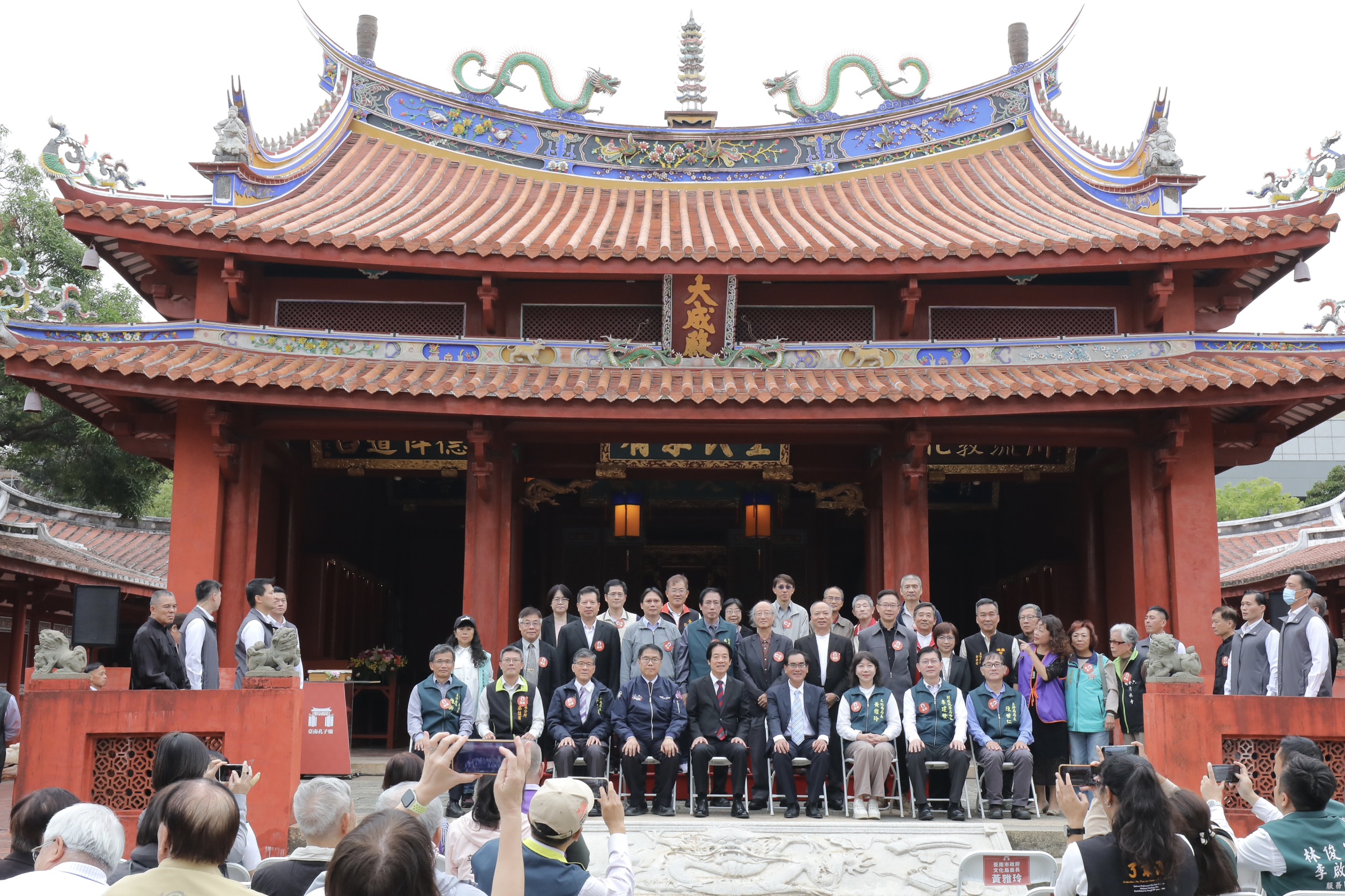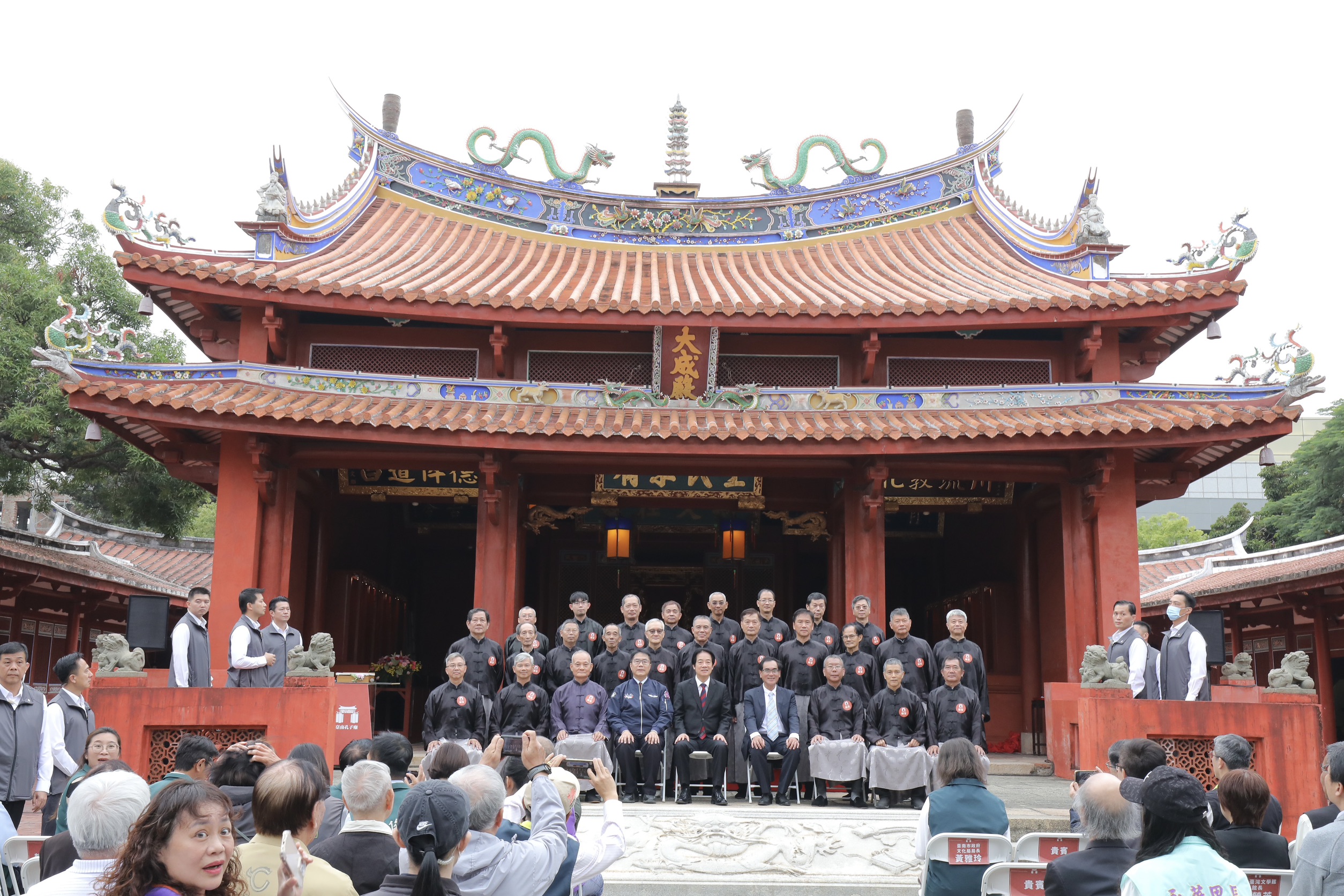 孔廟揭匾典禮出席貴賓包括孔廟文化基金會董監事、以成書院院生與多位文化界貴賓,議員沈震東、沈家鳳、黃麗招、邱昭勝、郭鴻儀、楊中成、陳怡珍、陳秋宏、蔡筱薇、李宗霖、李啟維及立委王定宇、郭國文、林俊憲服務處代表、各議員服務處代表,共同見證這場承繼自清代、跨越三個世紀的文化盛事。