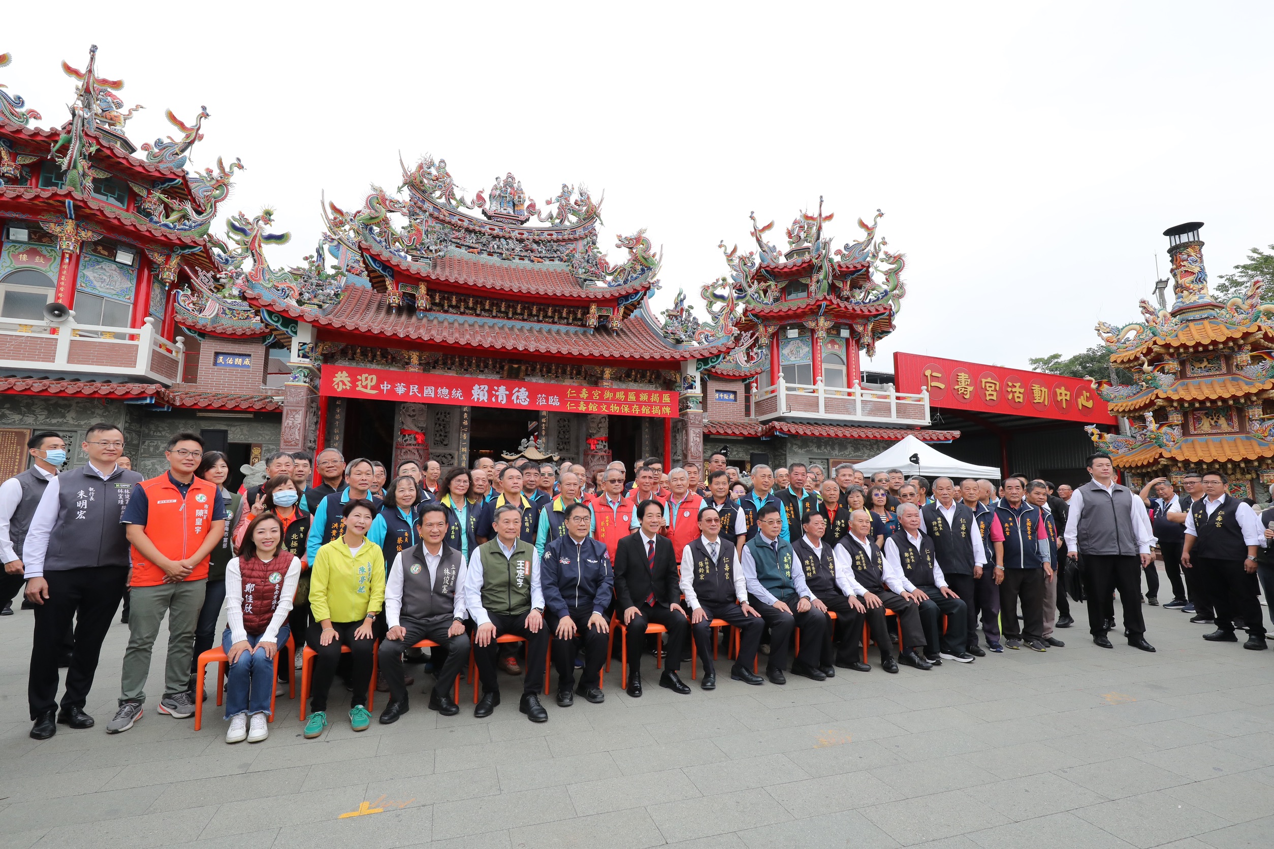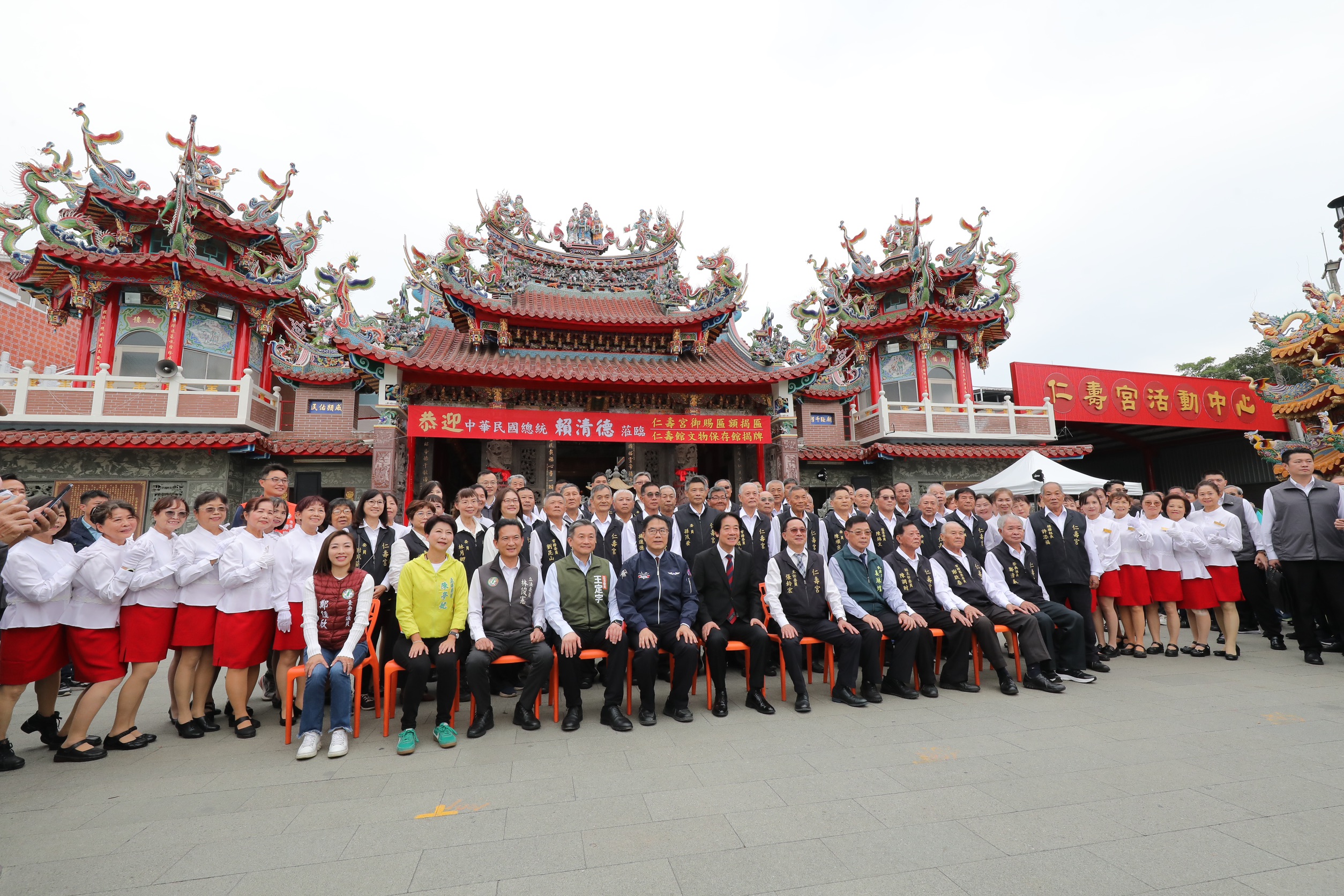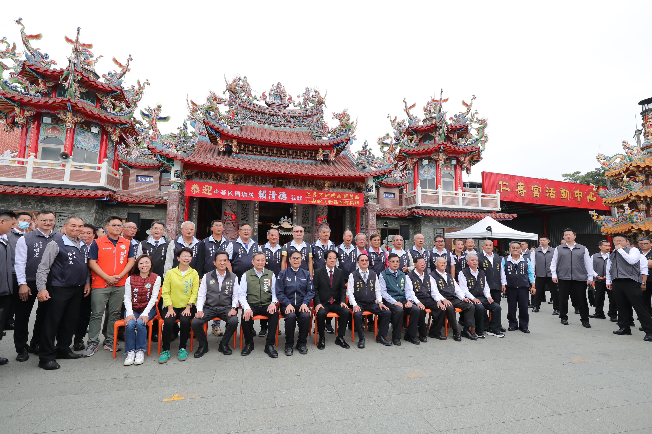 主祀保生大帝的歸仁仁壽宮,香火鼎盛,是地方信仰中心,被文化部列為重要民俗「南關線三大廟王醮暨遊社」共同保存者之一。仁壽宮草創於明鄭時期,1977年重建,屬於閩南式設計,屋頂精彩的琉璃剪粘工藝是重要特色,歷經近半世紀的風吹雨打日曬,嚴重脫落毀損。本次廟方整修剪黏屋頂並新建文物展示館,由賴總統贈匾「覃恩溥化」及為新建文物展示館揭牌。