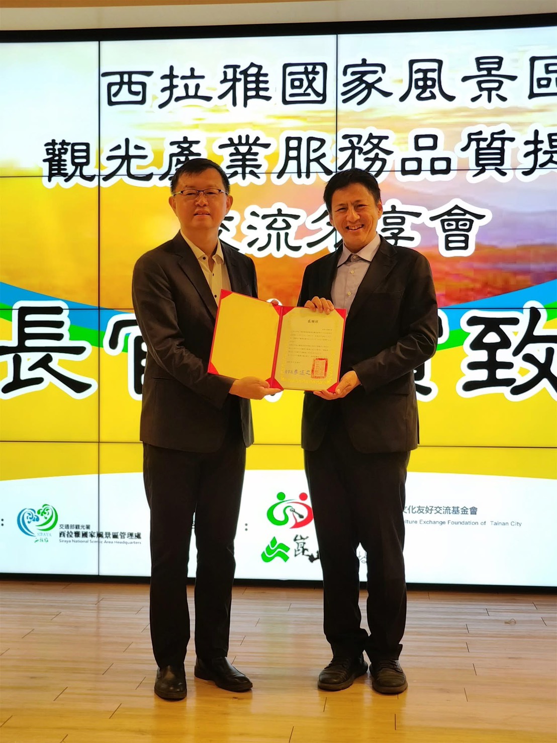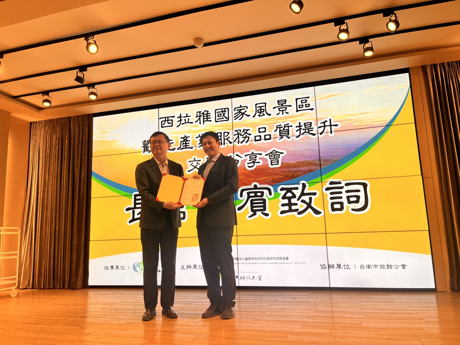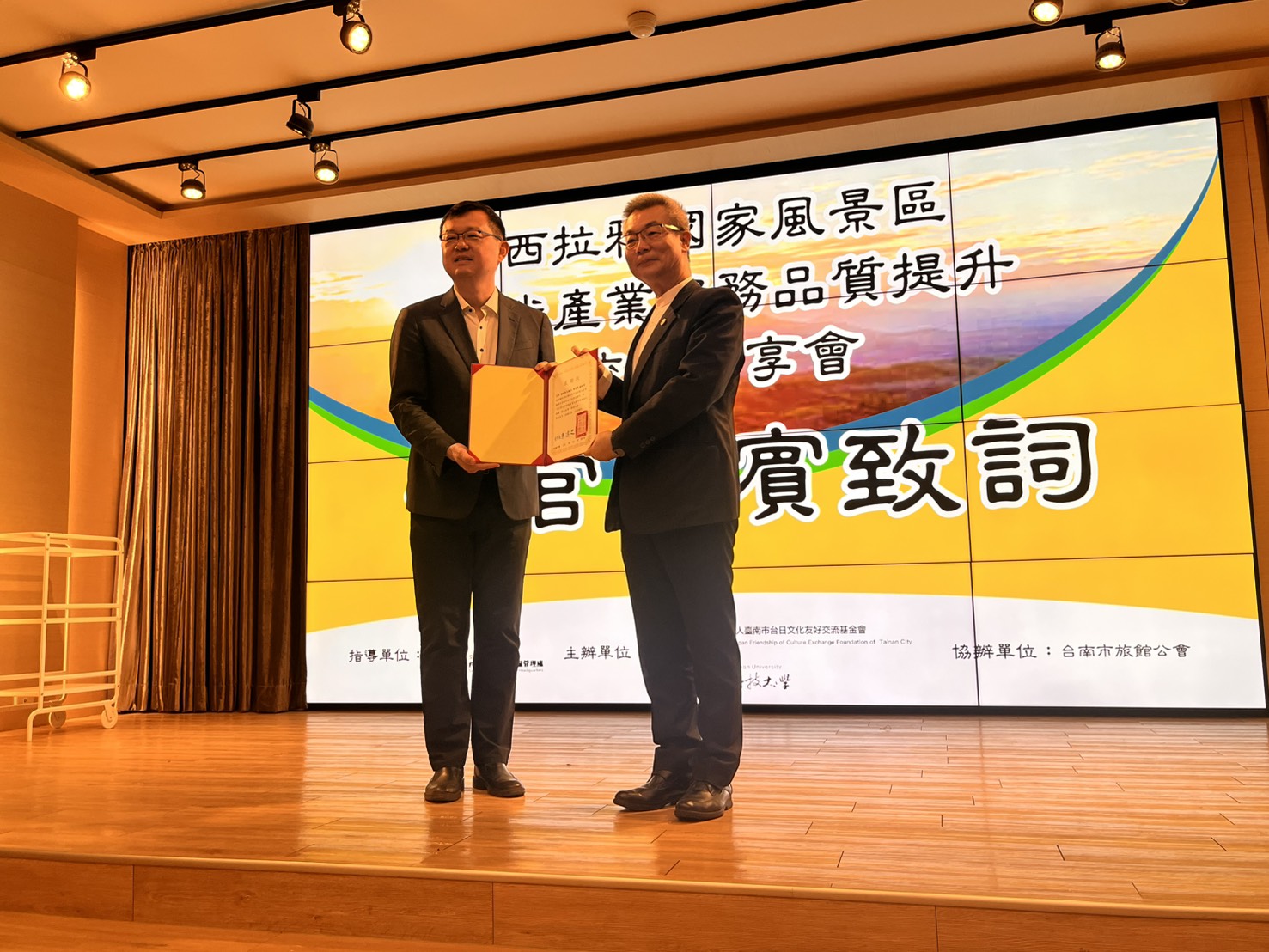 崑山科技大學行政副校長鐘俊顏表示,臺南在後疫情時代展現觀光快速復甦的能量,而西拉雅區域的旅宿與溫泉更是臺南觀光品牌故事中不可取代的一頁。他特別感謝台日基金會在活動中的資源整合與協助,並歡迎武井俊輔會長與都成信隆副會長從日本遠道前來,為區域觀光發展貢獻觀點與實務交流。鐘俊顏指出,觀光服務與永續旅宿管理並重,已是現階段產業競爭的核心,而此次台日跨國交流正為西拉雅旅宿開啟新的合作契機與可能路徑。