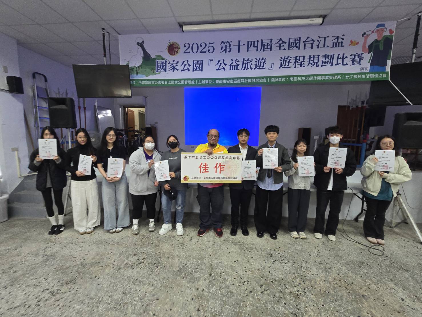 前理事長蔡登進公布,獲獎團體:冠軍「玩轉台江,Be Wonder」隊;亞軍: 鹽沙畫夢‧台江書藝、愛在旅途中等2隊;季軍江岸有愛、台江漣漪.續訪鹿耳、秋「鹿」途有你香遊「苔」江等3隊;最佳行程規劃獎台江風旅人、遇台江‧信仰與潮的故事、台young青年等3隊。各獲獎金10000至1000元獎學金及獎狀。另選出佳作11隊、入選16隊各獲得獎狀一紙。