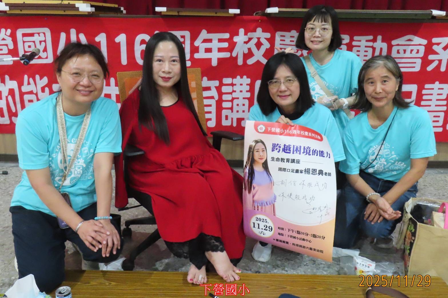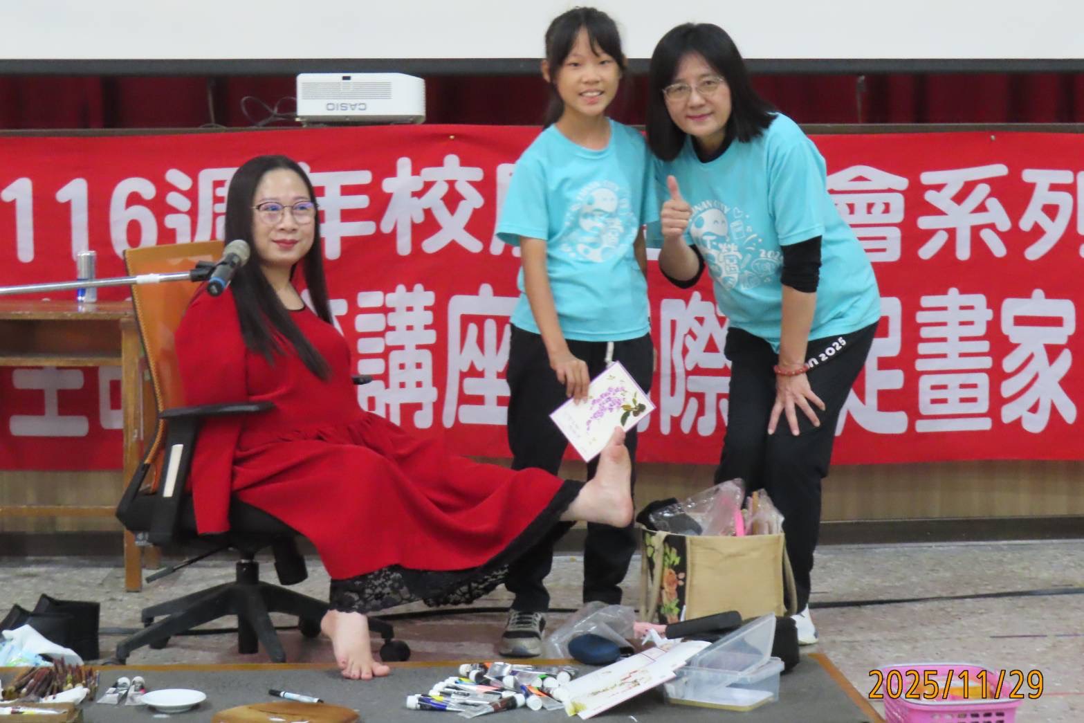 校長姜秋蘭表示,校慶特別邀請口足畫家楊恩典分享生命故事,透過面對逆境的真實歷程,鼓勵學生培養面對困難的韌性與勇氣,講座深具啟發性,現場師生深受感動。