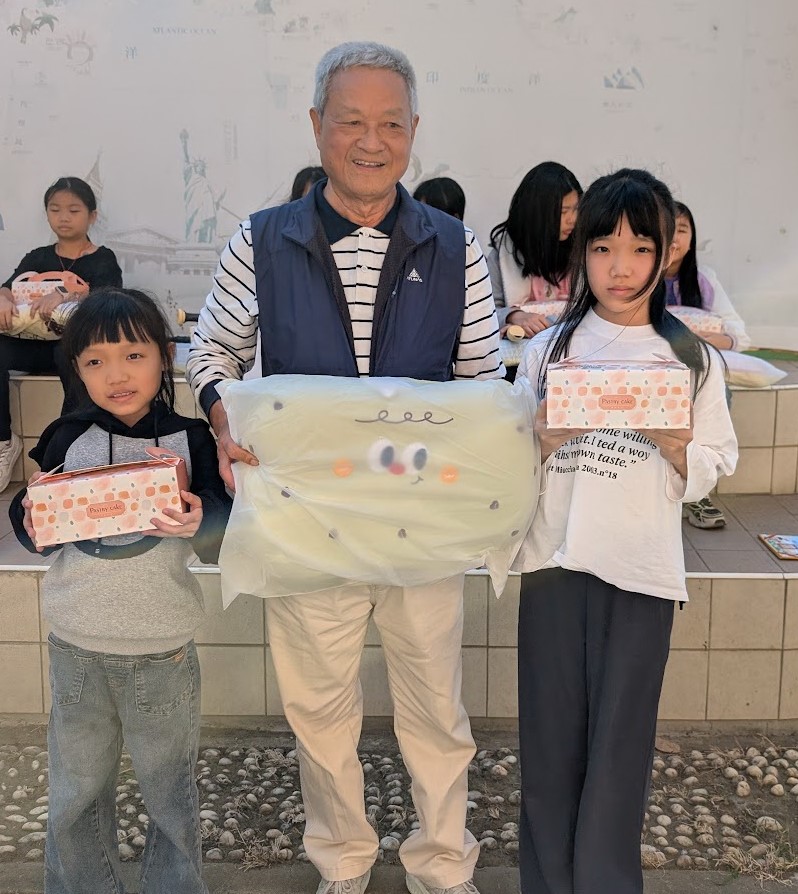林嘉雄也是六年級學生曾莉婷、曾莉靜姐妹的叔公,久別重逢讓三人相當開心。兩姐妹表示,能在耶誕節前夕收到叔公與賴董事長送上的禮物,是今年最棒、最驚喜的節日祝福。