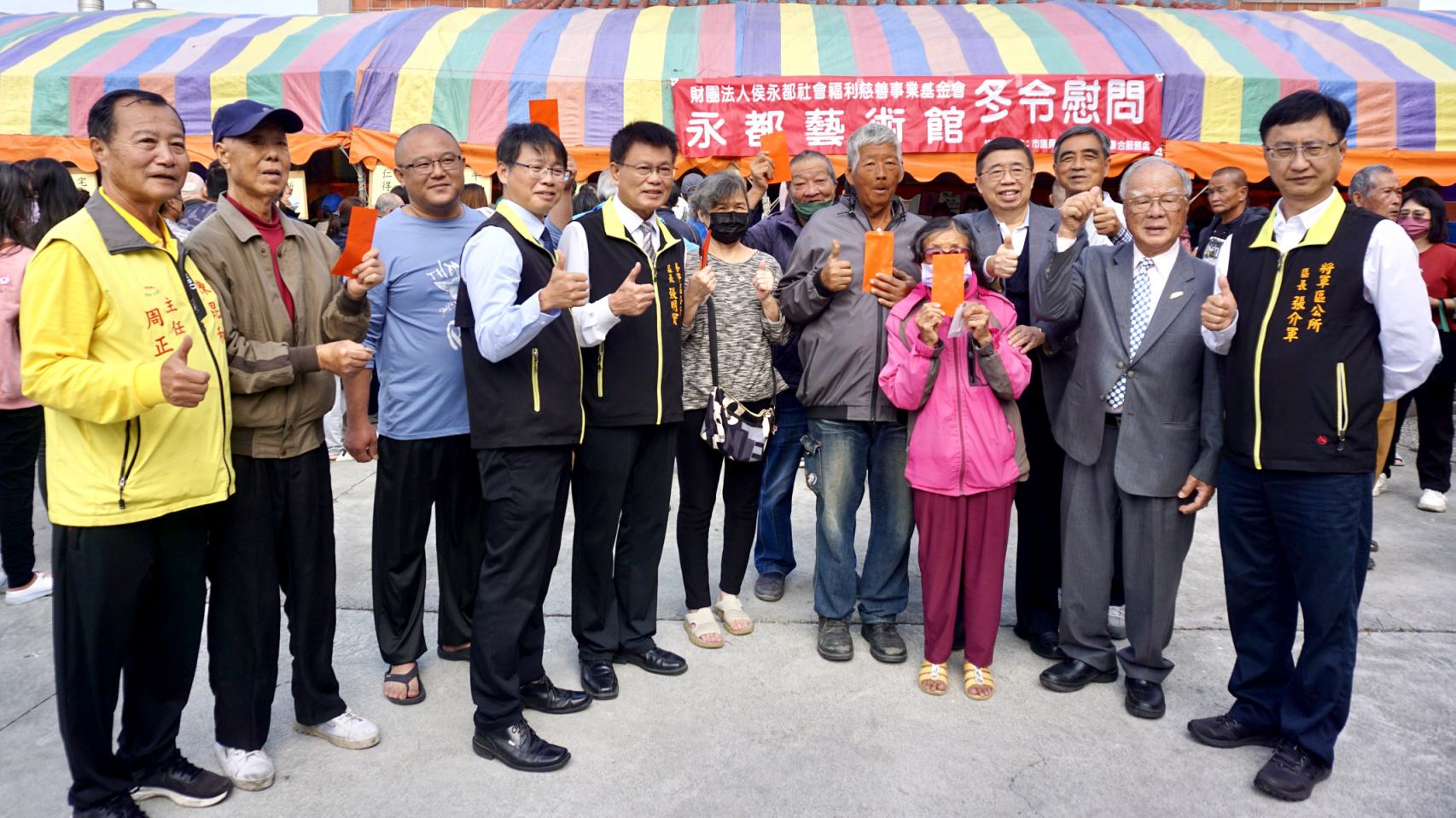 正值歲末寒冬,包括前市議員侯澄財、學甲區長張明寶、北門區長林建男、將軍區長張介軍等陪同侯博明出席放現場,侯博明關懷鄉親是否吃得飽、穿得暖,呼籲大家身體顧好活更久,每年來領慰問金,基金會將持續發下去,期盼為弱勢民眾送上寒冬的暖意。