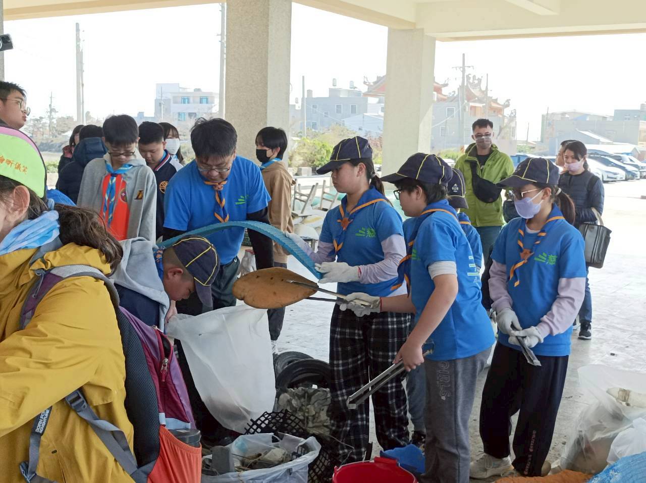 隨後進行行前教育,說明垃圾來源、減廢減塑觀念與環境安全提醒,接著由三慈幼童軍團與蕭壟複式童軍團分組展開撿廢減廢行動,實際清理漁港周邊與社區公共空間。活動最後,童軍們共同完成垃圾分類與成果分享,並透過大團圈交流心得,深化學習反思。