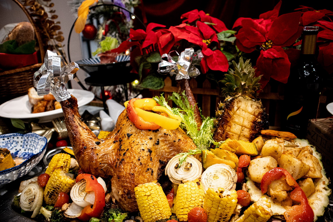 威尼斯餐廳的聖誕節禮籃,是居家用餐的最佳選項,提供3種主餐選擇:特選松露火雞3800元、爐烤美國牛肋眼3800元、維吉尼亞香料烤火腿3500元。每種禮籃均附法國麵包、南瓜鹹派、經典凱薩沙拉、松露洋芋、紅酒,還有各自的特色醬料,讓您在家也可以享受聖誕美食假期。聖誕禮籃供應日期為即日起~12/25,必須於3天前預訂。