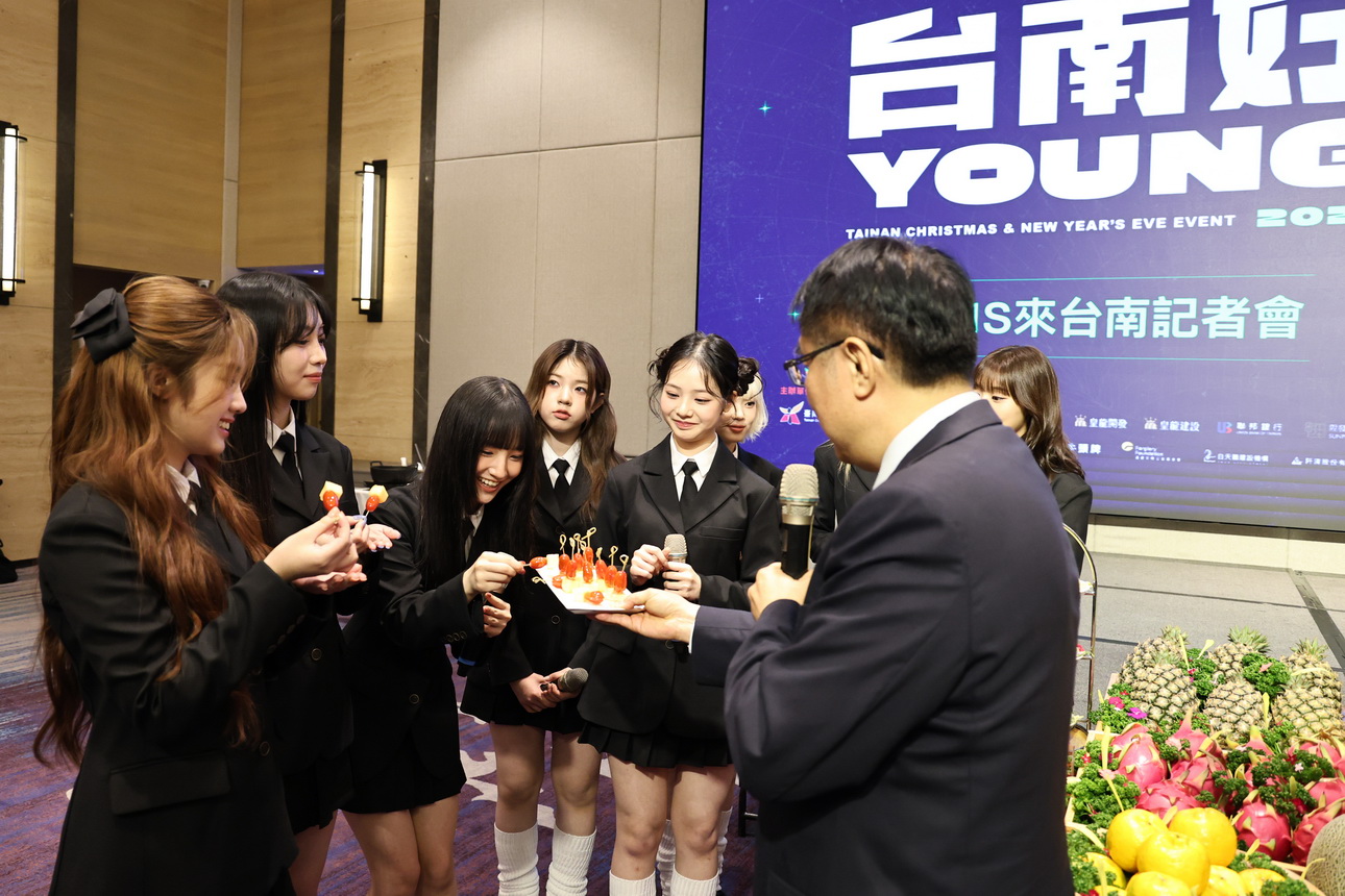 【記者邱仁武/台南報導】明(20)日將在「2026台南好young」首場耶誕搖滾演唱會演出的日本歌手川西奈月、宮崎薰,以及韓國團體 UNIS 與歌手鄭恩地,今(19)日已陸續抵達台南,為明晚演出進行準備。台南市長黃偉哲19日晚上特別於大員皇冠假日酒店舉辦媒體見面會,邀請藝人品嚐台南在地農特產品與當季水果,展現城市的熱情與待客之道。