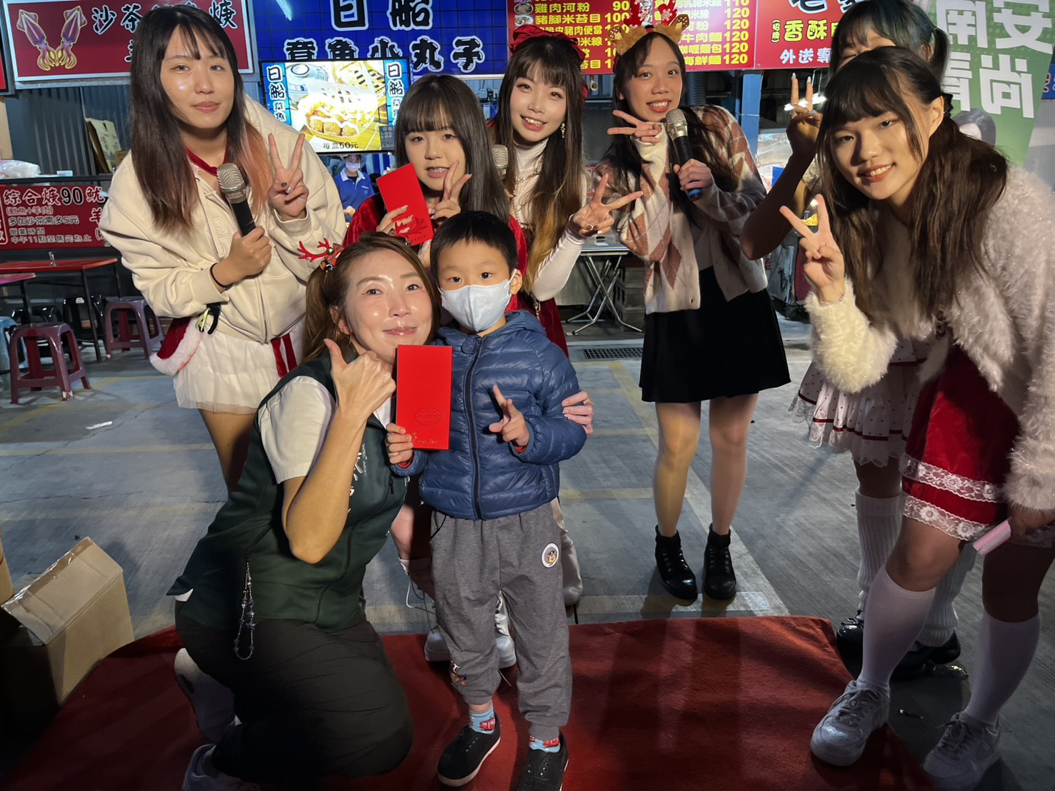今天活動邀請一群年輕活力十足的「耶誕姐姐」──Twinki舞蹈團體到場演出。她們帶來時下最夯的K-POP舞蹈表演與隨機舞蹈互動,也和民眾玩起趣味問答的遊戲,並且準備了聖誕糖果及小點心,讓傳統市場瞬間變身成熱血滿滿的韓流舞台,嗨翻全場,充分展現「創新安南聖誕節」的活力與創意。