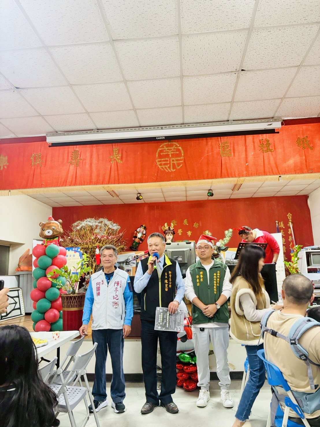 【記者邱仁武/台南報導】臺南市新營南紙社區發展協會,為慶祝即將到來的耶誕佳節,昨天晚間特地舉辦「耶誕親子歡樂晚會」,由理事長李秉諺主持,新營區長陳宏田、民榮里長黃新義等許多來賓參與,場面熱鬧溫馨。