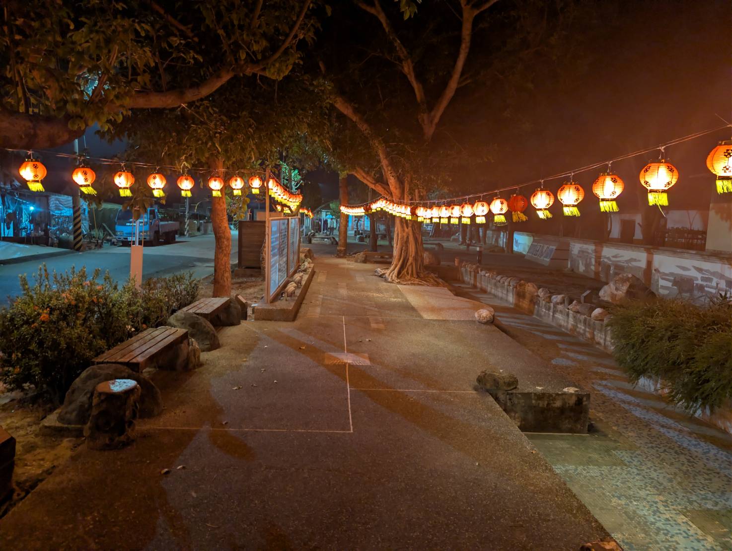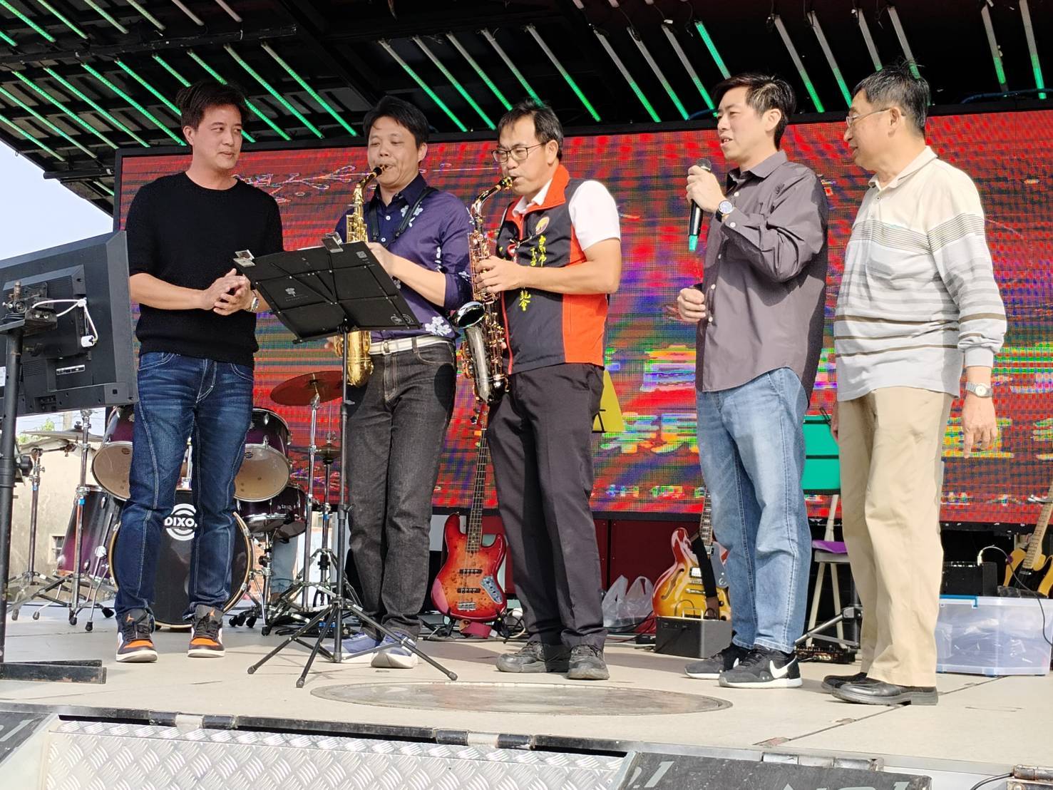 在燈火與藝術的環抱下,右武衛合唱團受海墘營文化藝術基金會董事長姜志聰與下營顏氏宗親會及各界賢達大力支持,深情演唱《西北雨》、《望春風》及《快樂出帆》。