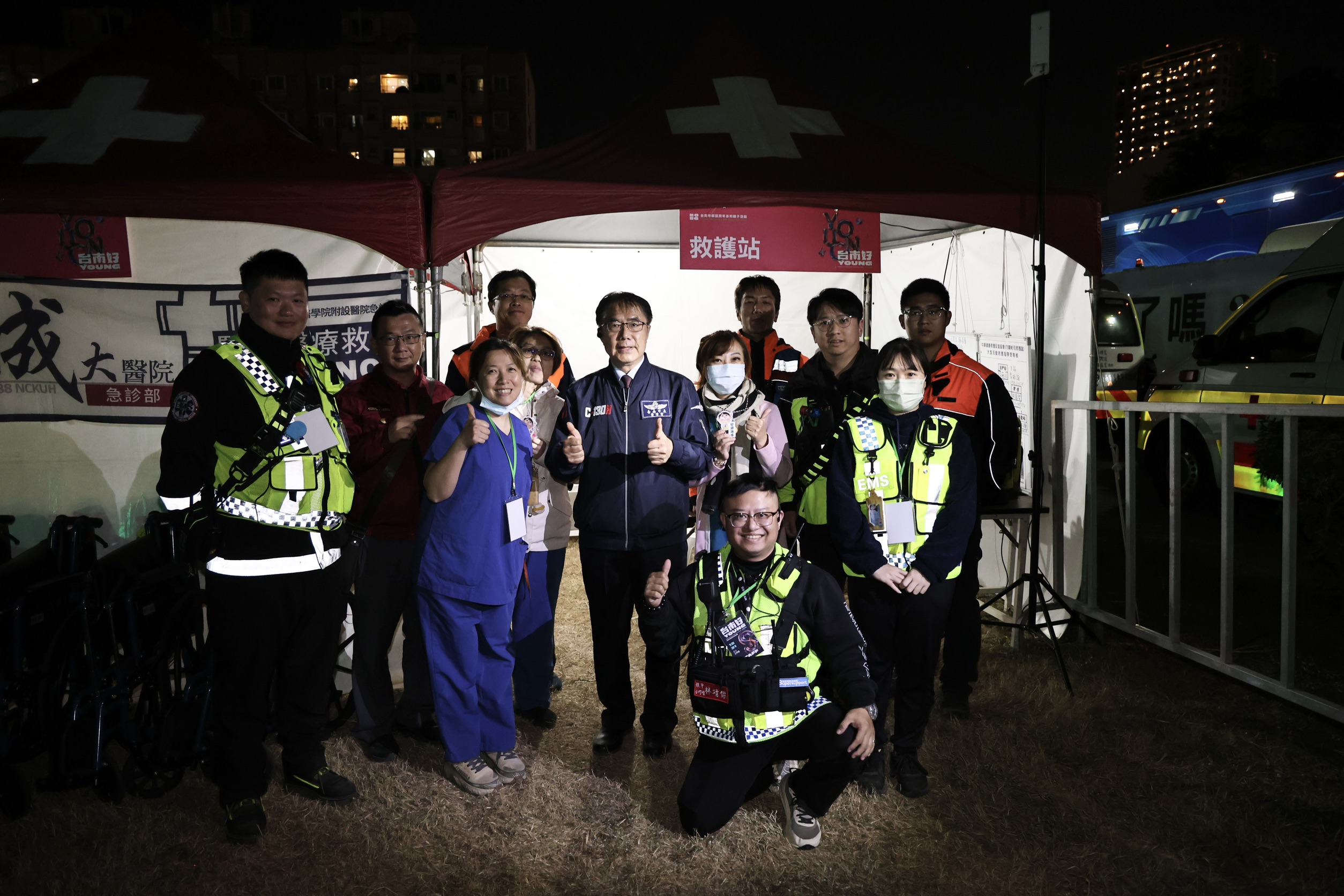 【記者邱仁武/台南報導】由台南市政府主辦的「2026台南好YOUNG跨年晚會」在今(31日)晚登場,集結台、韓、港、日等知名藝人、天團接力演出,陣容華麗,還未開演就吸引大批歌迷提前排隊等待。除了跨年演唱會卡司精彩可期,西側廣場現場更聚集了許多在地美食攤販,讓民眾聽覺、味蕾都能獲得最大滿足。台南市長黃偉哲也在演唱會開始前抵達西側廣場與等待的民眾互動、發送糖果,並向現場值班的警消人員、醫護人員致意。